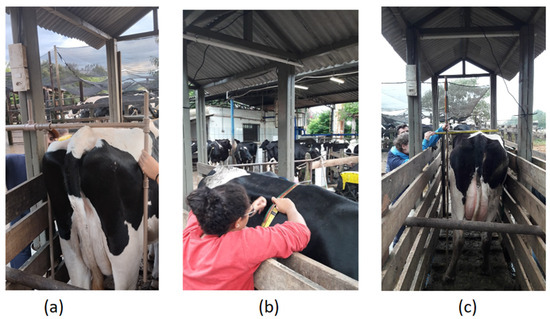 - Gruber, L.; Ledinek, M.; Steininger, F.; Fuerst-Waltl, B.; Zottl, K.; Royer, M.; Krimberger, K.; Mayerhofer, M.; Egger-Danner, C. Body weight prediction using body size measurements in Fleckvieh, Holstein, and Brown Swiss dairy cows in lactation and dry periods. Arch. Anim. Breed. 2018, 61, 413–424. [Google Scholar]
