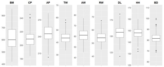 - Ruchay, A.; Kober, V.; Dorofeev, K.; Kolpakov, V.; Dzhulamanov, K.; Kalschikov, V.; Guo, H. Comparative analysis of machine learning algorithms for predicting live weight of Hereford cows. Comput. Electron. Agric. 2022, 195, 106837. [Google Scholar]