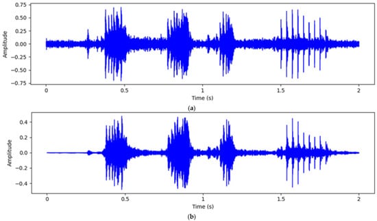 Comparison of audio before and after denoising (a) Original waveform; (b) Filtered waveform.