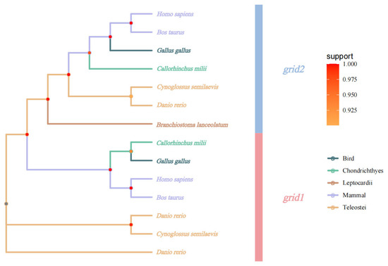Phylogenetic analysis utilized the grid1 and grid2 gene sequences obtained from sequencing results to construct a phylogenetic tree with gene sequences from other species. This analysis revealed that Cynoglossus semilaevis clusters closely with zebrafish, indicating the closest affinity, while forming a more distant cluster with other vertebrates, consistent with evolutionary characteristics (Figure 5).