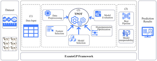 To address the above issues, the use of AutoML has been proposed to optimize the ML process. AutoML is an automated end-to-end machine learning process that automates key steps in model development, including data preprocessing, feature engineering, model selection, and hyper-parameter tuning, thereby accelerating model deployment and significantly reducing reliance on human intervention and expertise [21]. Among the existing AutoML frameworks, the Genetic Programming-based Tree Process Optimization Tool (TPOT) is a widely used approach. TPOT is capable of automatically exploring and evolving the machine learning process to find the optimal machine learning pipeline [22]. It has been shown that AutoML performs well in several domains, for example, the AutoML tool developed by Simone et al. [23] demonstrated higher reliability in predicting articular osteoarthritis and achieved excellent performance in predicting 90-day mortality after gastric cancer surgery [24]. Furthermore, Zhang et al. [25] proposed a model called CascadeDumpNet that combines deep learning and AutoML for open dump detection, which effectively eliminated false detections and improved accuracy. Nevertheless, there are still unfilled gaps in the application of AutoML in animal genomic selection. Furthermore, the ‘black-box’ nature of ML models makes it difficult to interpret the results, which limits researchers’ trust and application of the models [26]. In the field of genomic selection, model interpretability is paramount. When generating predictions or recommendations, it is essential to provide clear, transparent, and logically coherent justifications. This ensures that breeders can trust the model’s outputs and make well-informed breeding decisions. Therefore, we hypothesize that integrating AutoML with interpretability methods can not only enhance the predictive performance of the model but also improve its transparency and practicality.