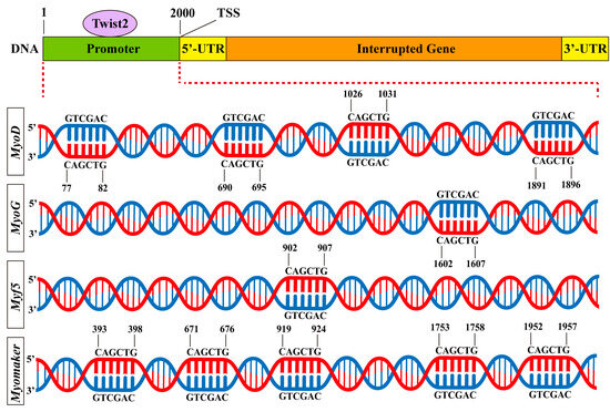Predicted binding sites for muscle growth-related genes to Twist2.