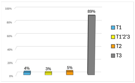 Considering all of the samples, which numbered 110, the total representation consisted of 89.1% of haplogroup T3, 4.5% of haplogroup T2, 3.6% of haplogroup T1, and 2.7% of haplogroup T1′2′3.