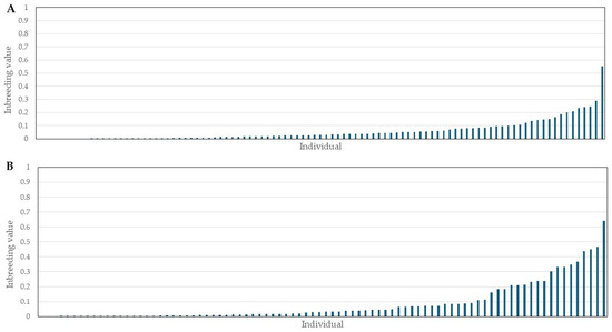 Figure 4. Inbreeding values of Bardoka and Karakachan ewes; (A) inbreeding values of Bardoka ewes; (B) inbreeding values of Karakachan ewes.