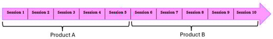 Overview of the crossover study design. Each cat received gabapentin or a placebo for five consecutive training sessions, followed by the alternate product for five sessions. The order of administration (AB or BA) was randomized.
