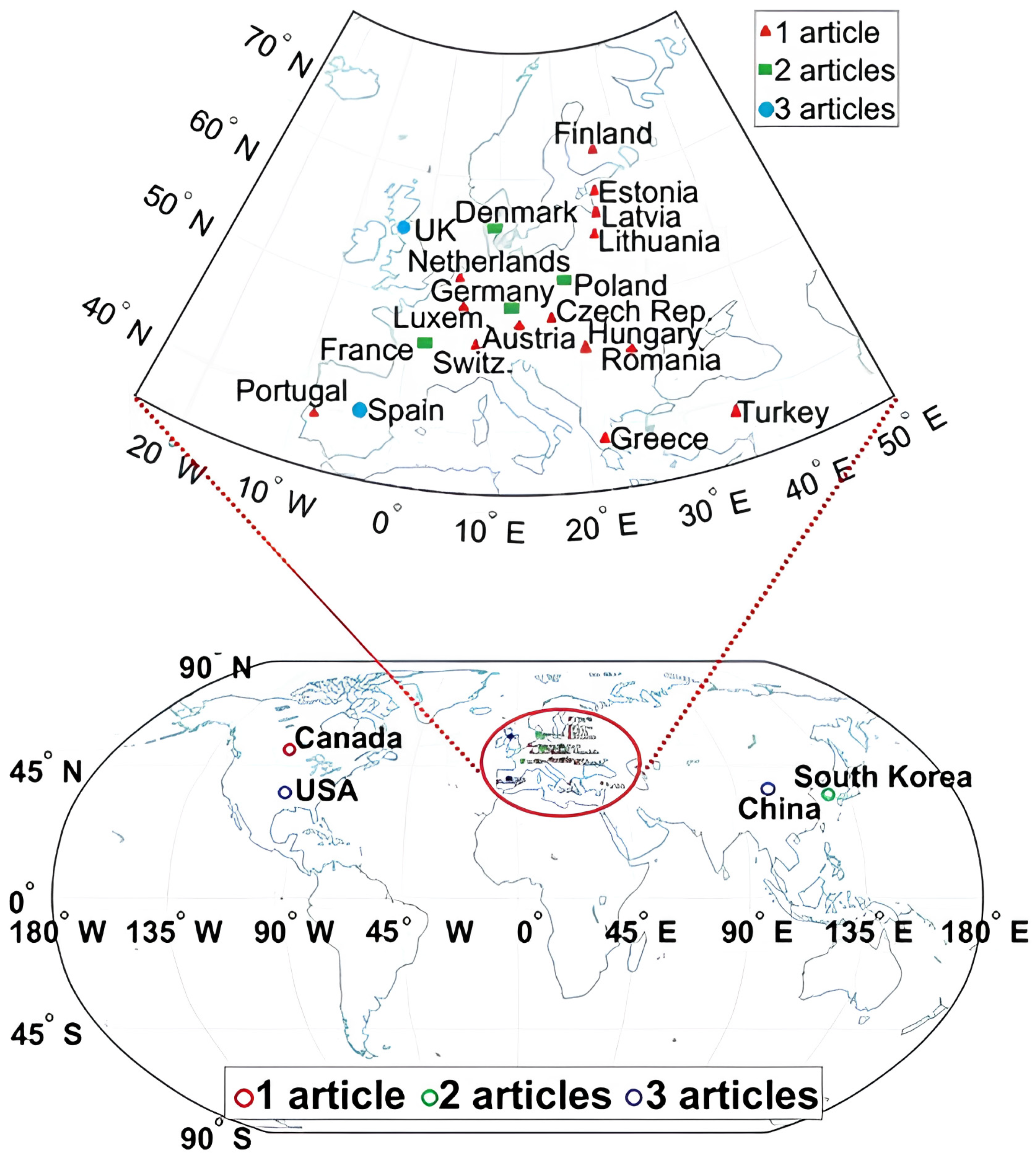 3.1. Articles Geographical Distribution and Bibliographic Cluster Analysis (RQ1)
