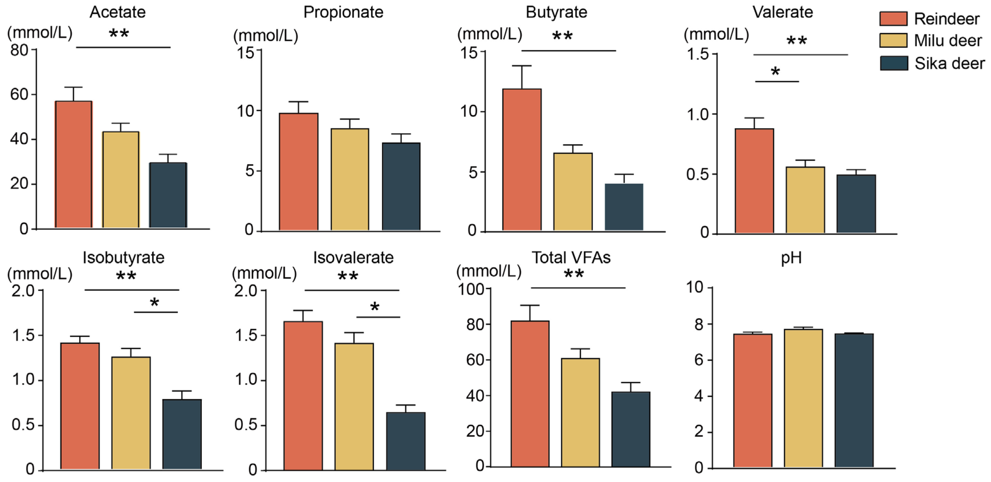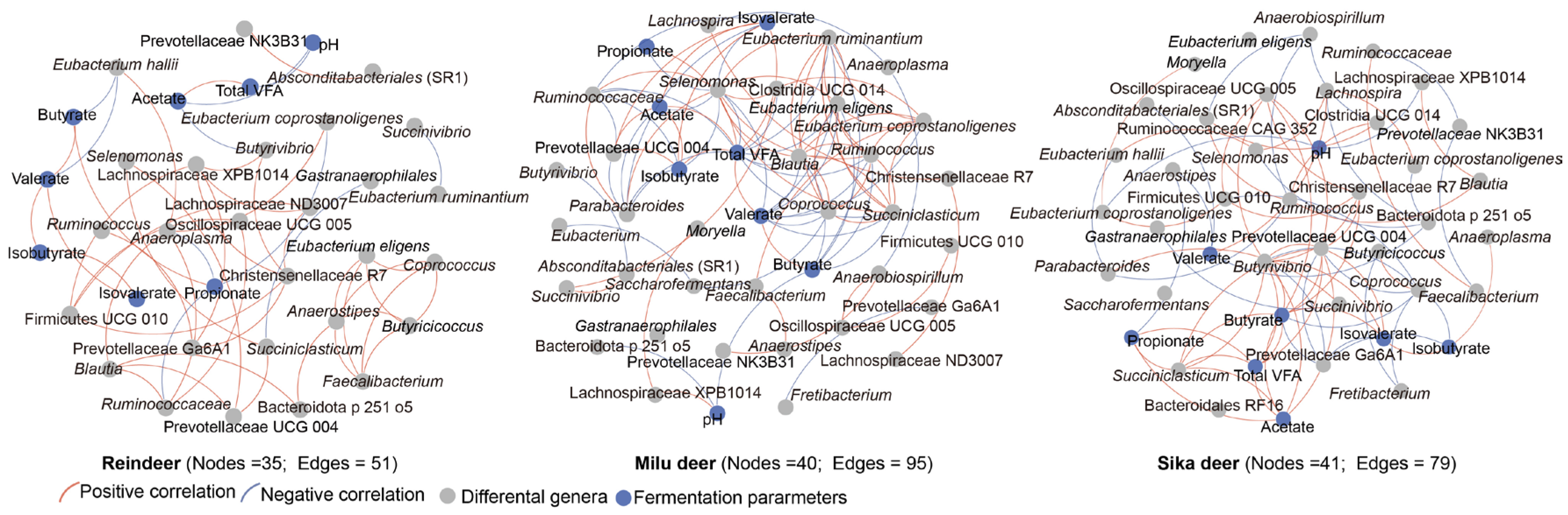 3.2. Comparison of Rumen Fermentation Parameters Among the Three Cervid Species