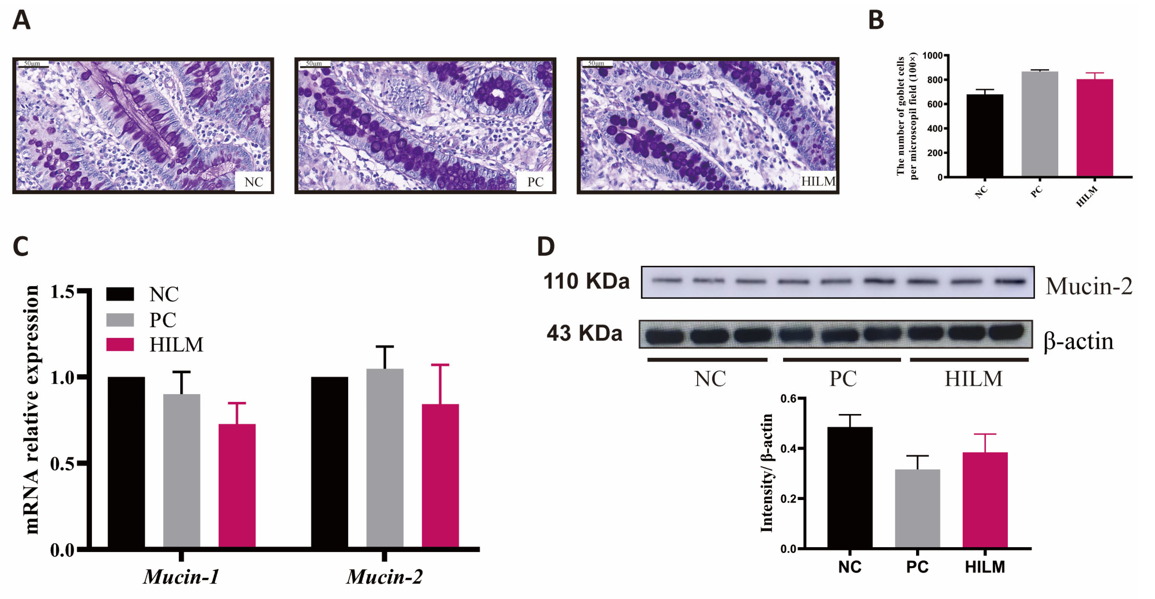 3.2. Effect of Dietary HILM on Relative Weight of Organ and Colonic Barrier Function of Weaned Piglets in ETEC-Challenged Pig Housing