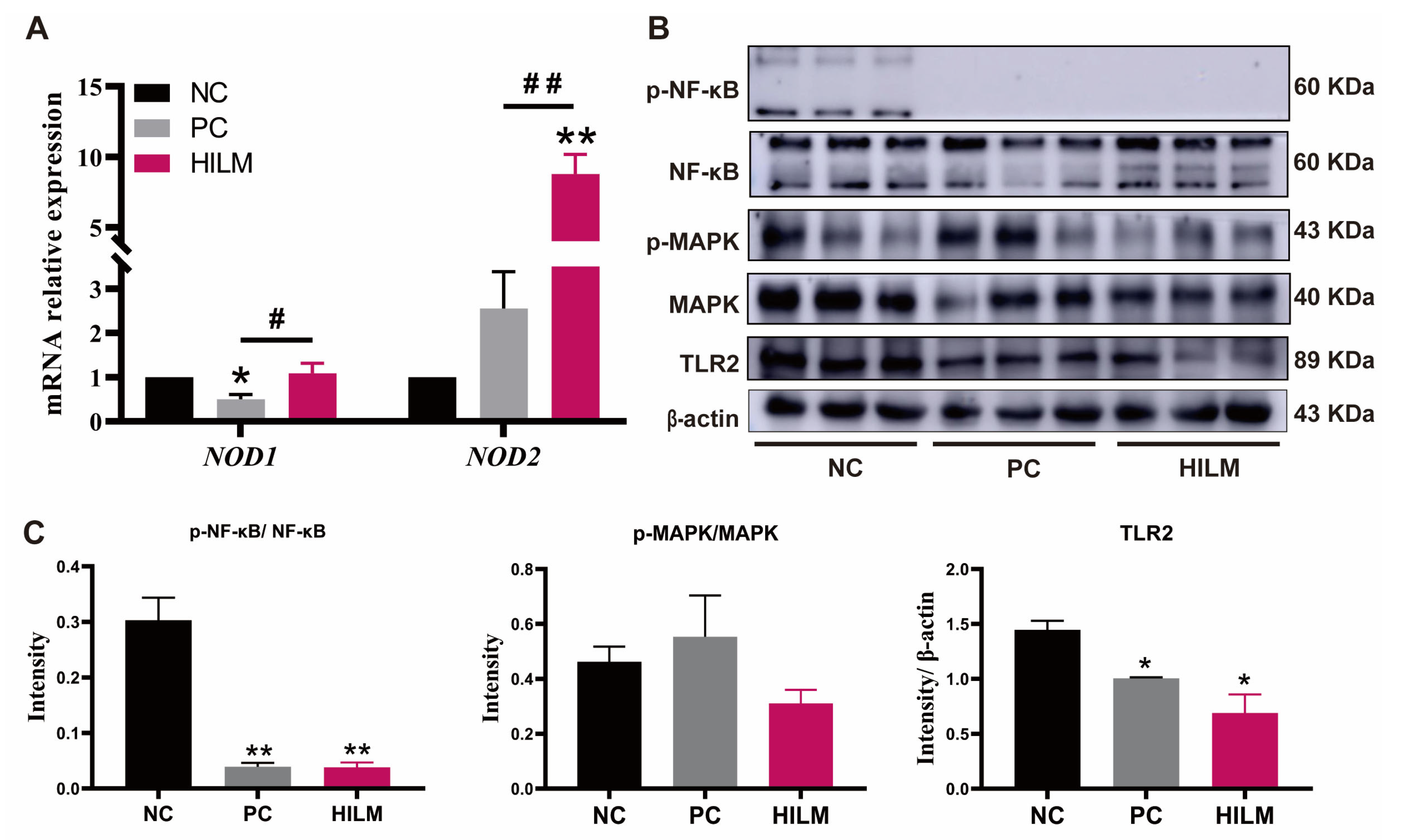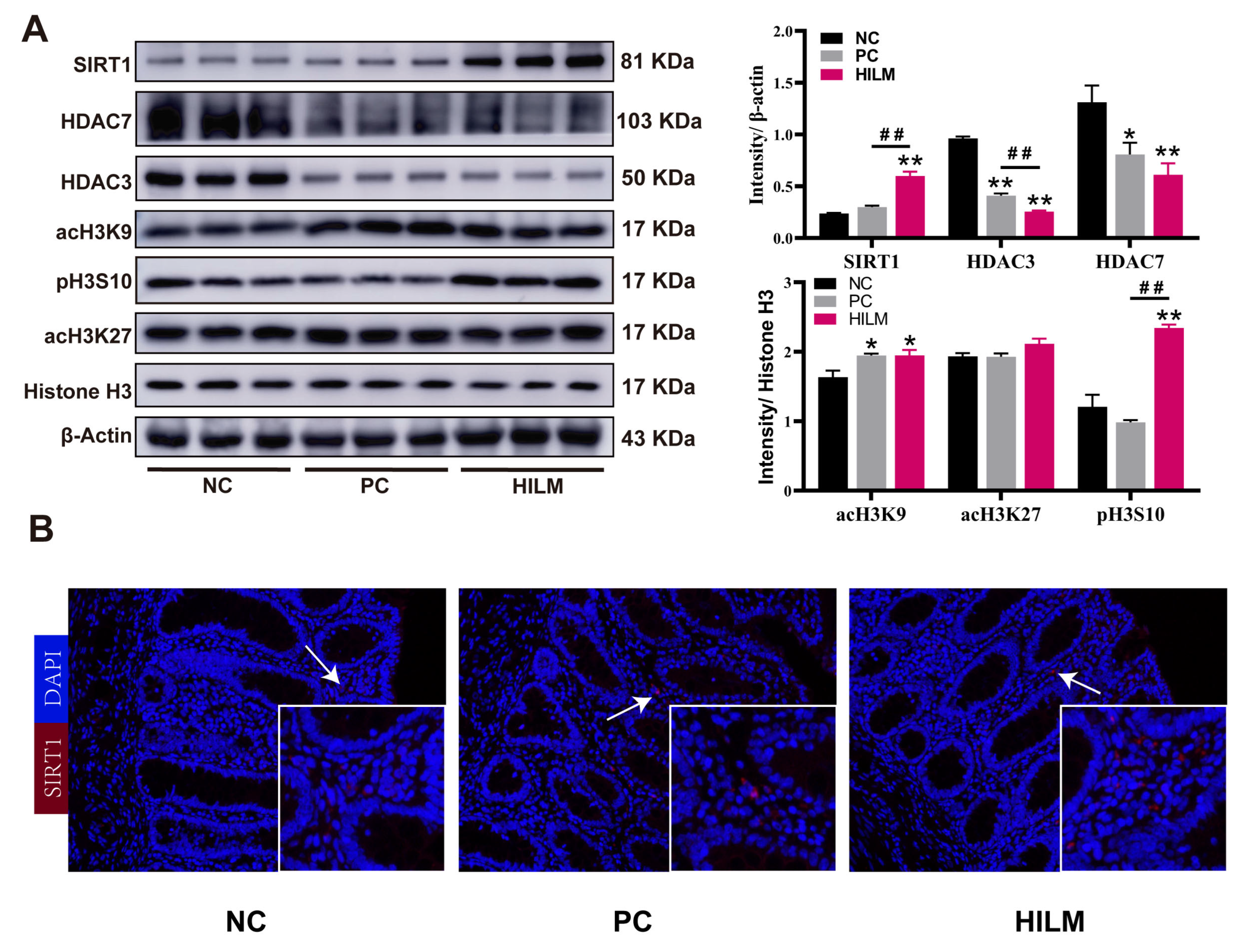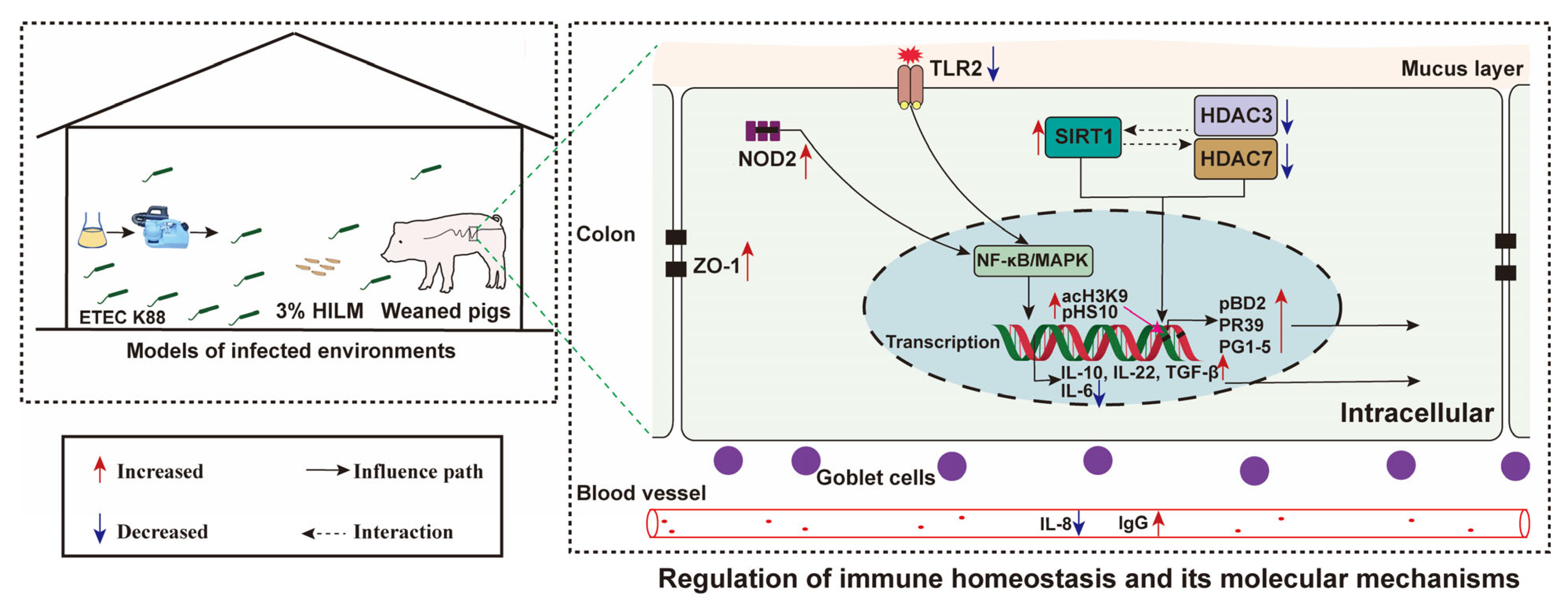 3.4. Effects of Dietary HILM on Immune Response and Histone Acetylation Modifications of Weaned Piglets in ETEC-Challenged Pig Housing
