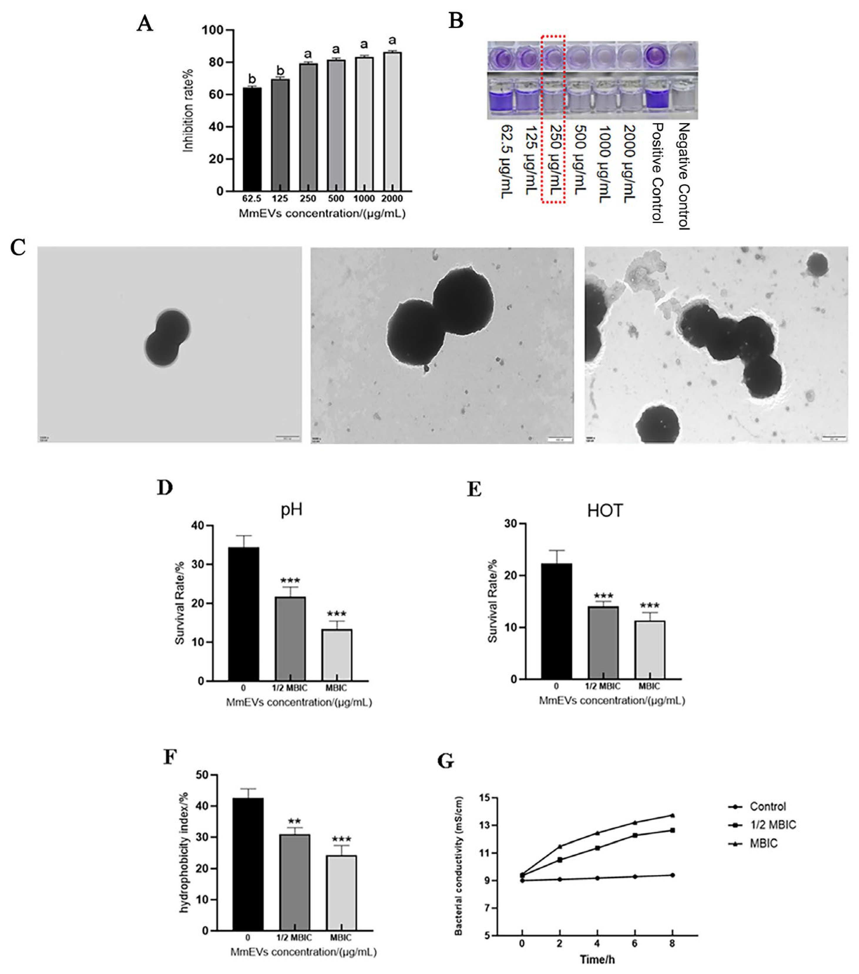 3.8. Effects of MmEVs on the Physicochemical Tolerance of S. aureus