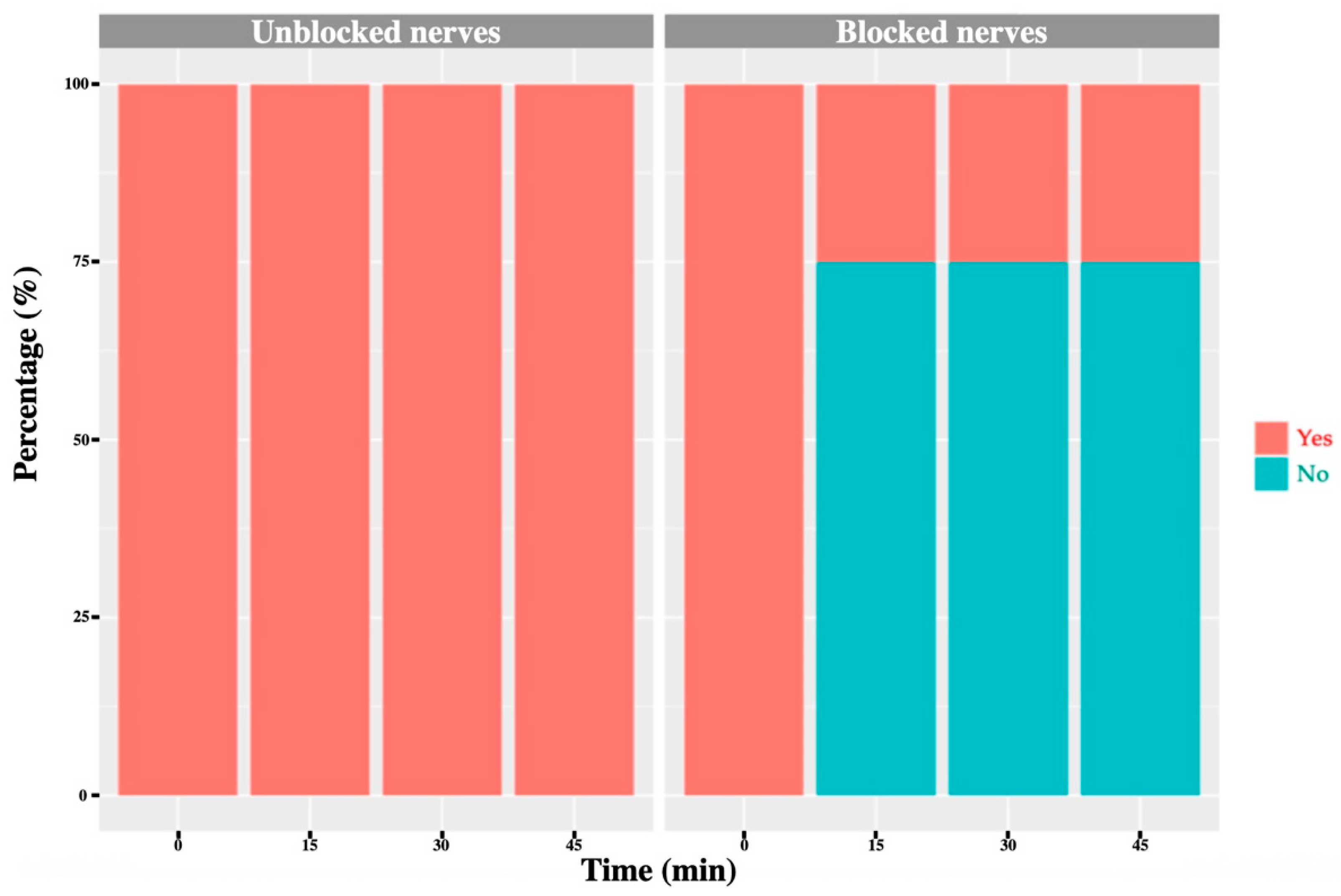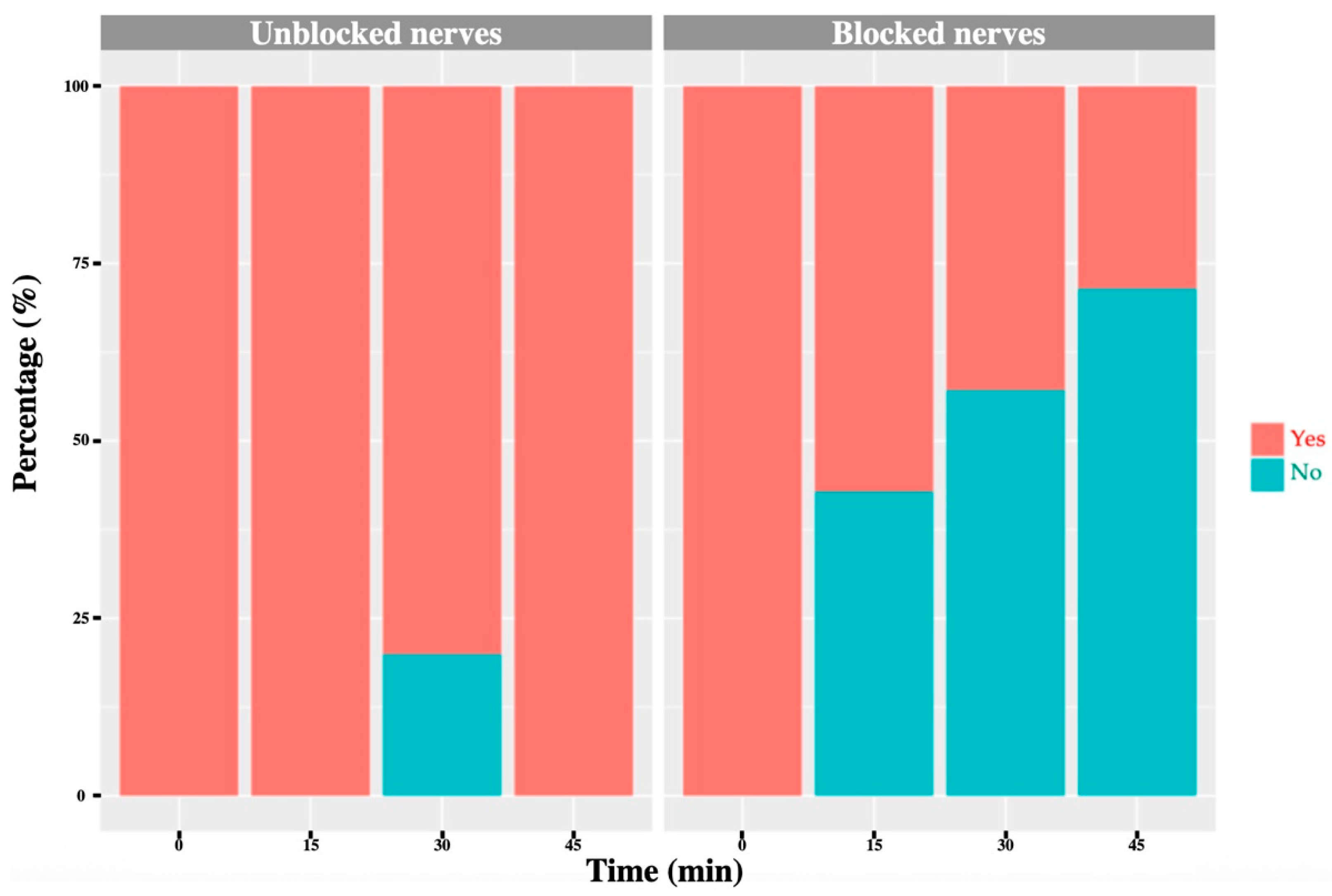 p < 0.0001) was observed in the temperature increase between blocked and non-blocked nerves (