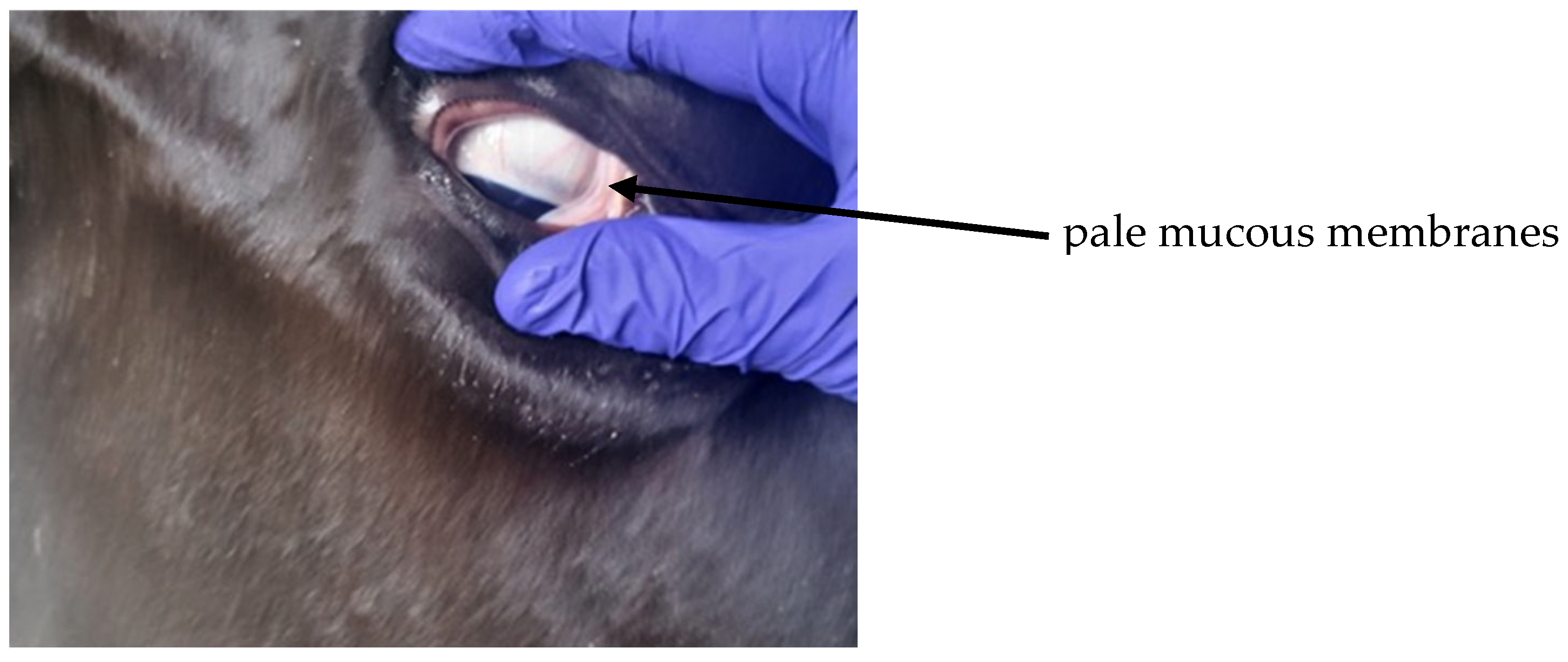 - Rahmati, S.; Aziz, A.; Tawfeeq, M.; Zabuli, J.; Nazhat, S. Clinical features of post-parturient hemoglobinuria in dairy cattle and buffaloes: A review. Open J. Vet. Med. 2021, 11, 143–155. [Google Scholar] [CrossRef]