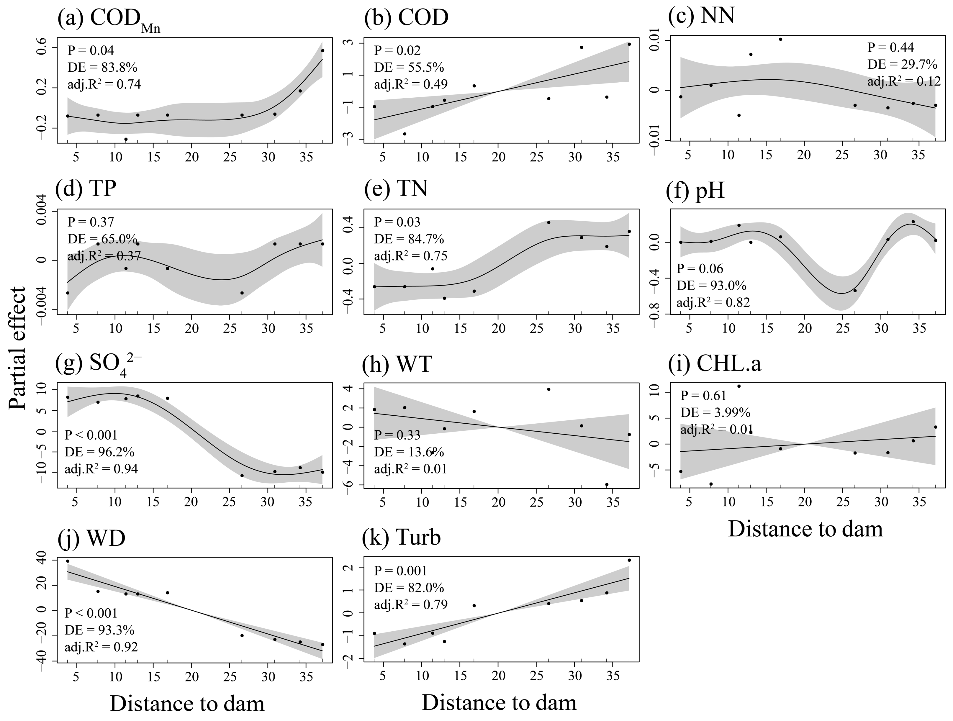 3.1. The Distribution Patterns of Environmental Characteristics of the Dongfeng Reservoir