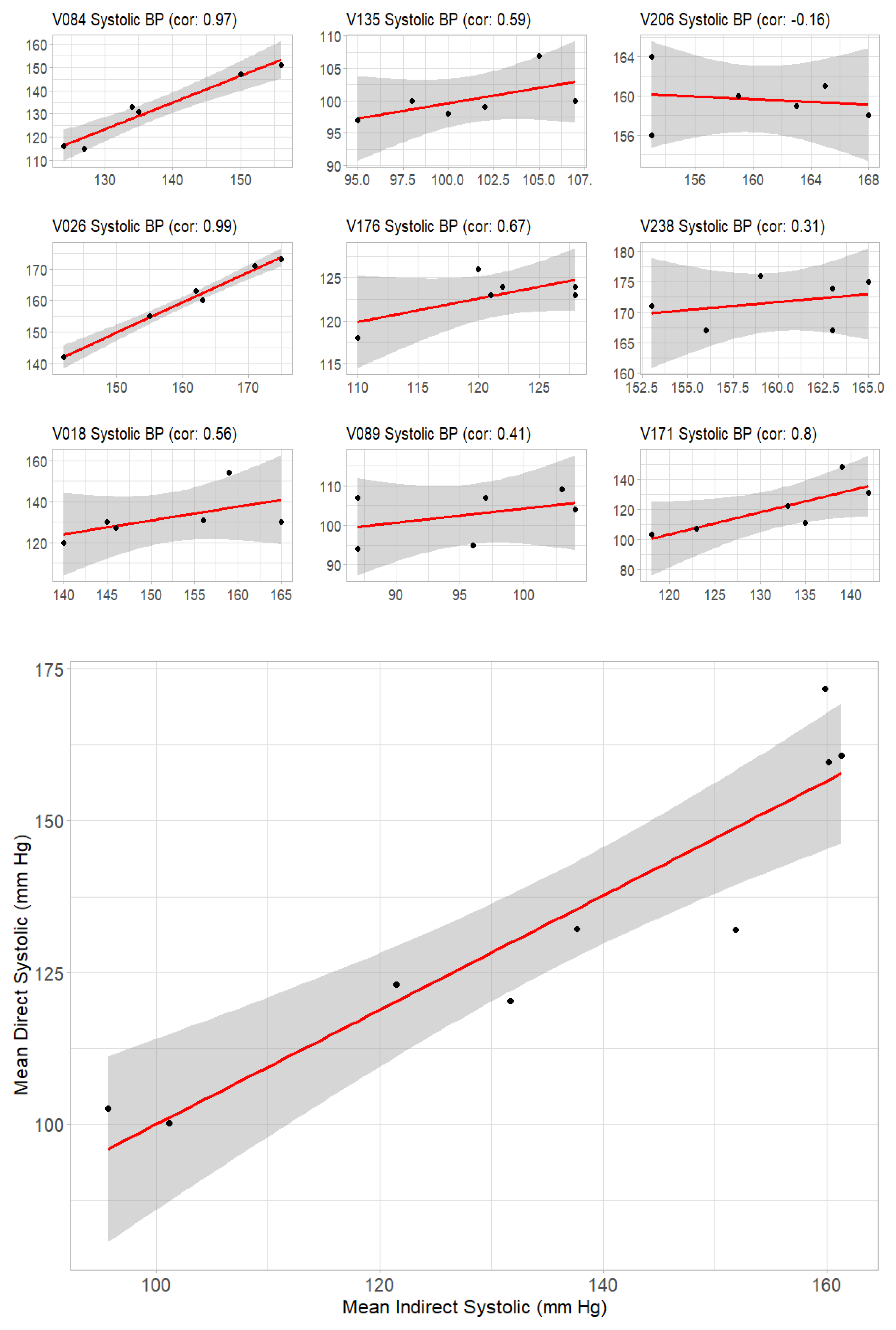 Figure 1). On analysis, individual variability in correlation between systolic direct and indirect measurements was noted, and the Pearson correlation coefficient was also calculated using the mean of each individual bear’s systolic measurements (