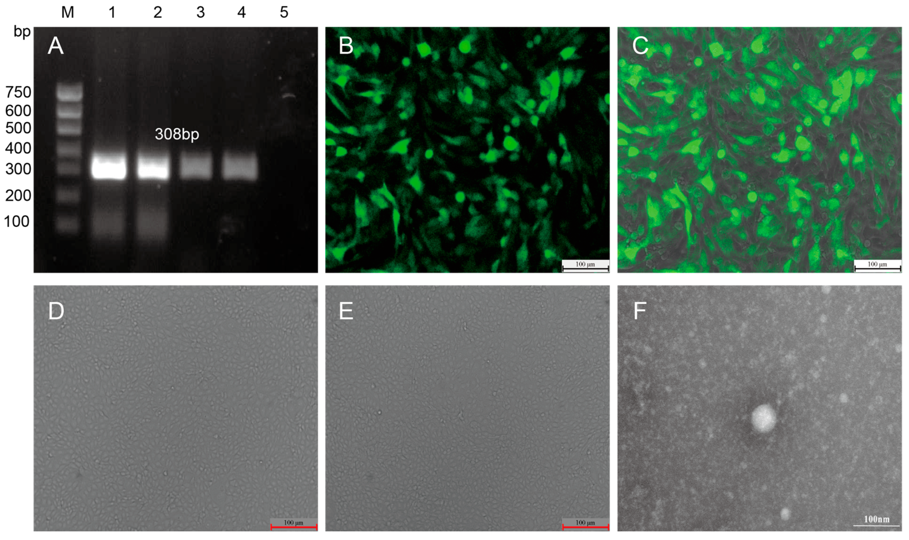 After performing three cycles of freeze–thawing on the cell culture supernatant, the sample was collected and centrifuged at 10,000 rpm at 4 °C for 30 min to remove the majority of the cell debris and impurities. The supernatant was then collected and further concentrated by centrifuging at 35,000 rpm for 4 h. The supernatant was discarded, and the resulting pellet was resuspended in 100 µL of PBS. A 10 µL aliquot of the suspension was placed onto a copper grid for electron microscopy, where it was adsorbed at room temperature for 10 min. The grid was then stained with 3 µL of 2% phosphotungstic acid for 90 s, followed by natural air drying at room temperature. The viral particles were observed under a transmission electron microscope.