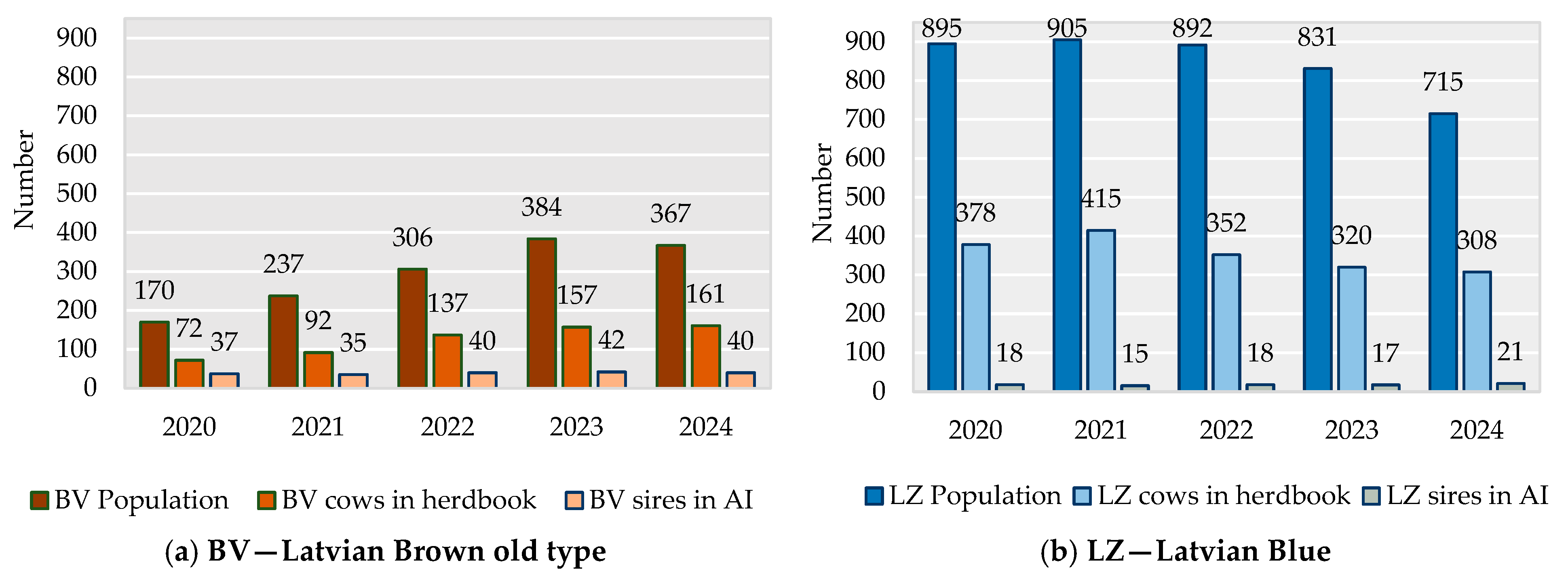 - Breeding Program of the Latvian Blue Cow Breed 2019–2029 (In Latvian). Available online: https://www.lad.gov.lv/lv/normativie-akti-par-dzivnieku-registraciju (accessed on 24 October 2025).