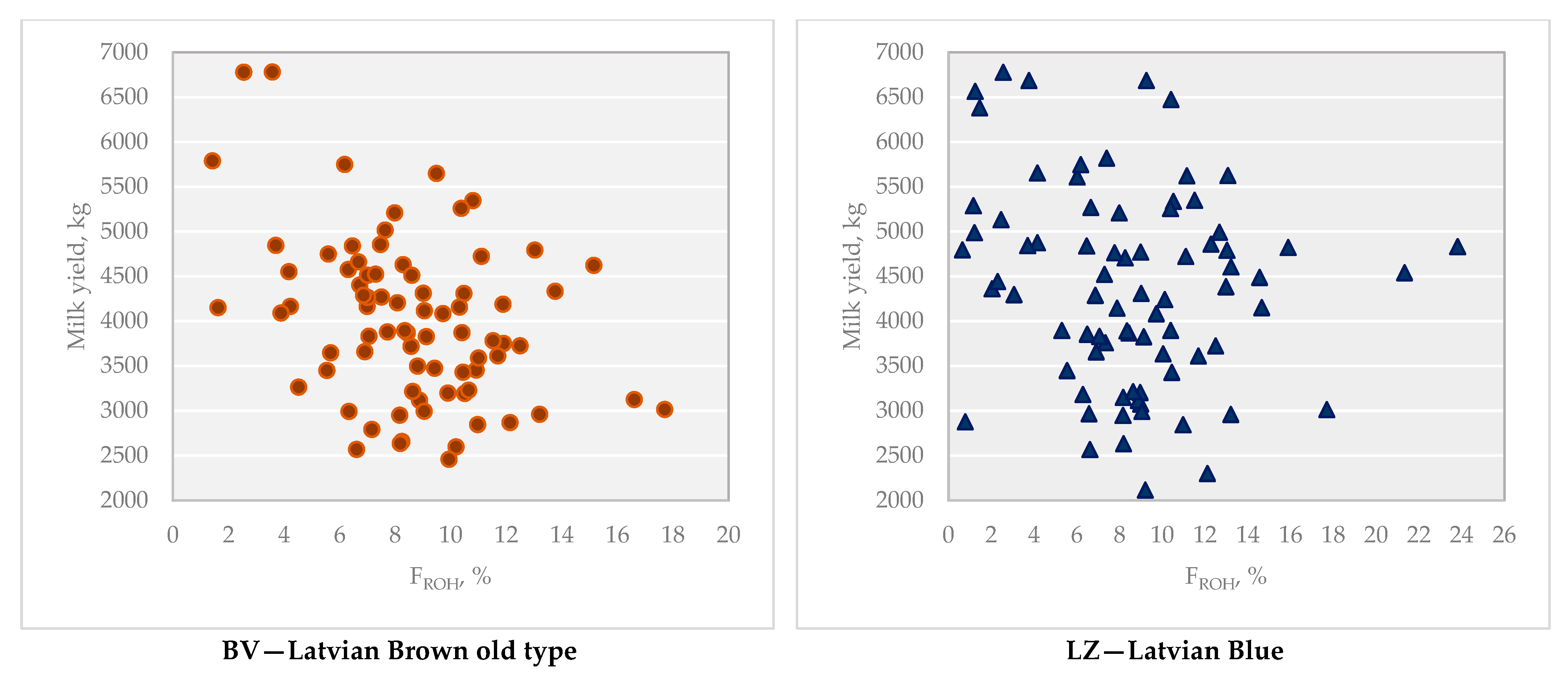 - Paura, L.; Jonkus, D. Inbreeding Evaluation in Latvian Local Cattle Breeds. Acta Fytotech. Zootech. 2020, 23, 52–57. [Google Scholar] [CrossRef]