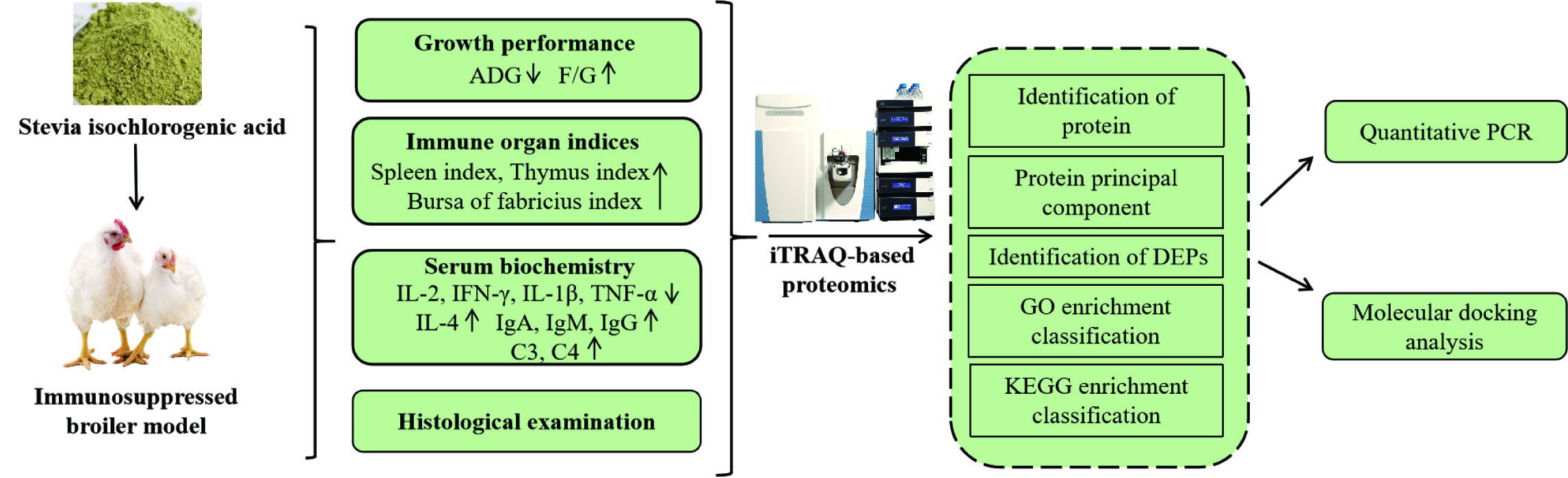 Jin J, Zhao S, Zhao P, Zhang Y, Wu L, Zhou L, Sun Y, Zhao W, Zhou Q. iTRAQ-Based Proteomics Reveals the Potential Mechanisms Underlying Diet Supplementation with Stevia Isochlorogenic Acid That Alleviates Immunosuppression in Cyclophosphamide-Treated Broilers. Animals. 2026; 16(1):25. https://doi.org/10.3390/ani16010025