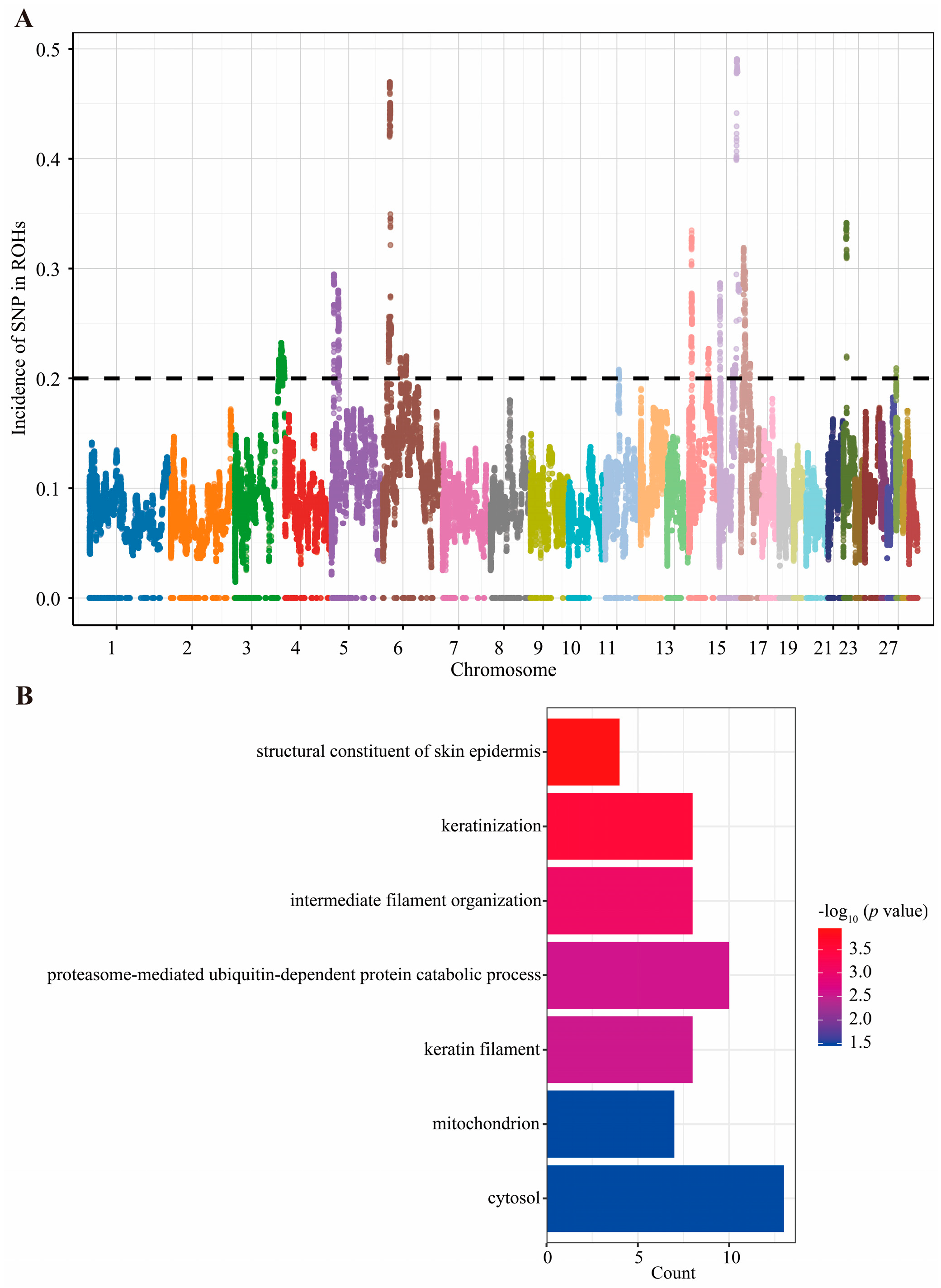 3.7. Identification and Enrichment Analysis of Candidate Genes in High-Frequency ROH Regions