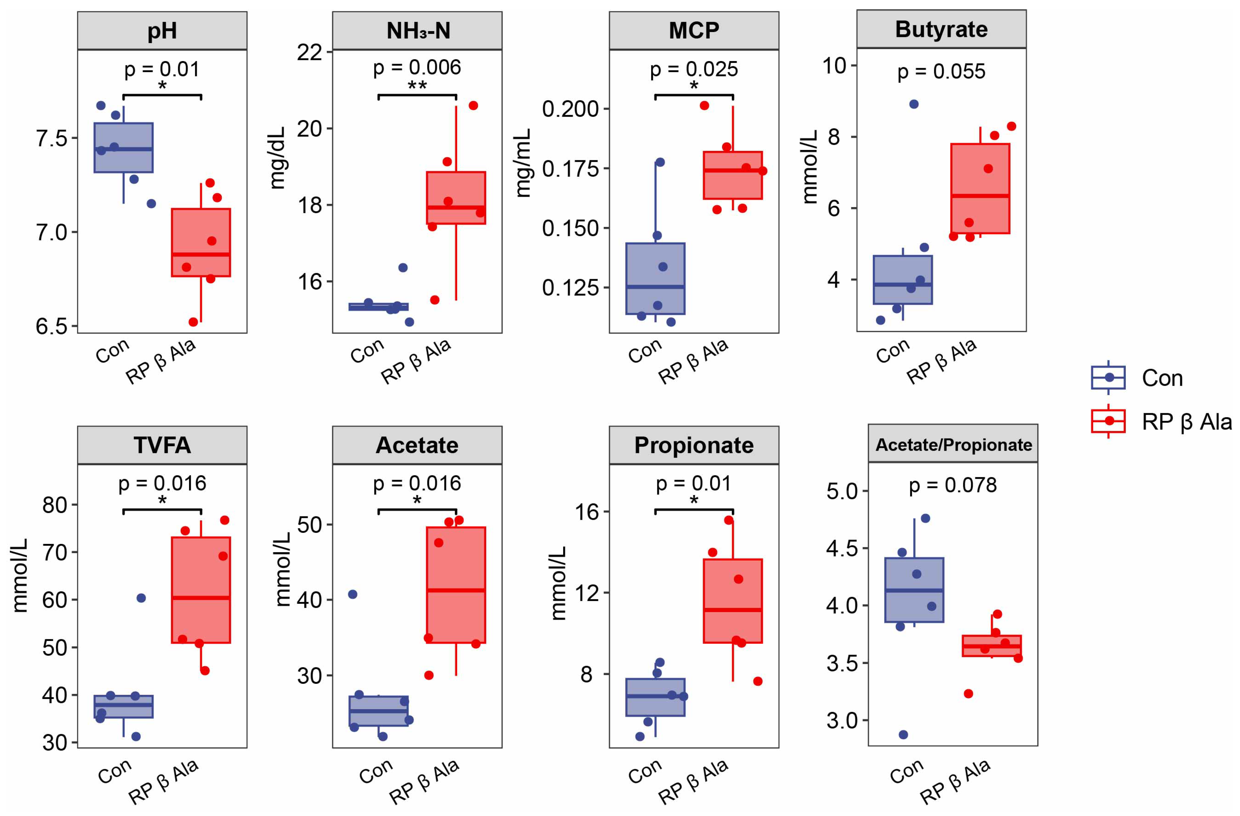 4.3. Effect of Supplementary Rumen-Protected β-Ala on Rumen Fermentation and Bacteria in Beef Cattle