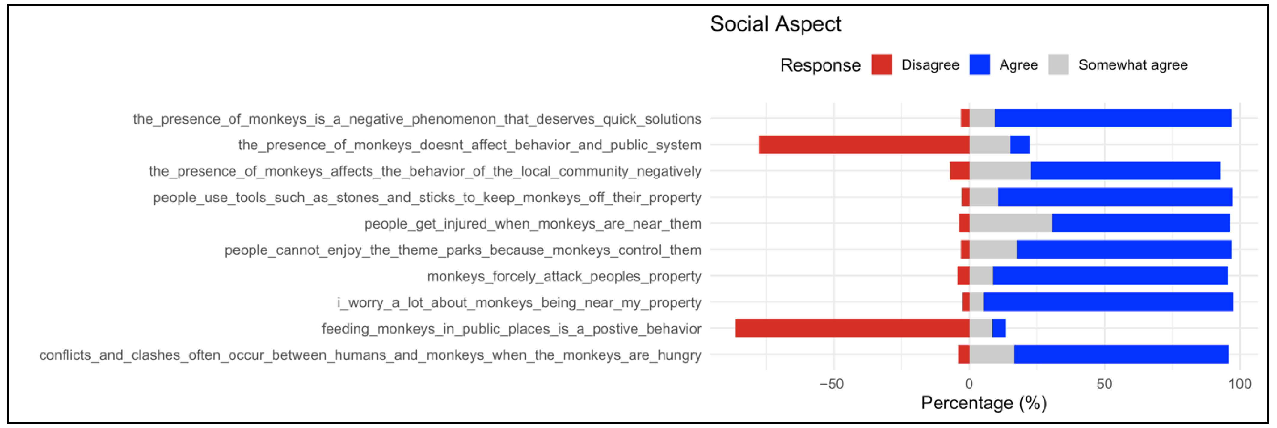 - Karimullah, K.; Widdig, A.; Sah, S.; Amici, F. Understanding potential conflicts between human and non-human primates: A large-scale survey in Malaysia. Biodivers. Conserv. 2022, 31, 1249–1266. [Google Scholar] [CrossRef]