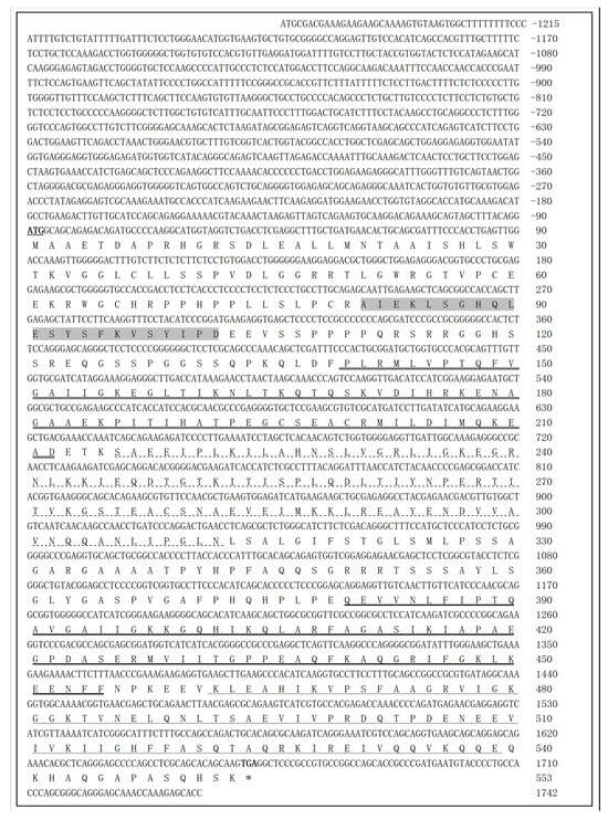 3.1. cDNA Sequence Analysis of Goose IGF2BP2 Gene