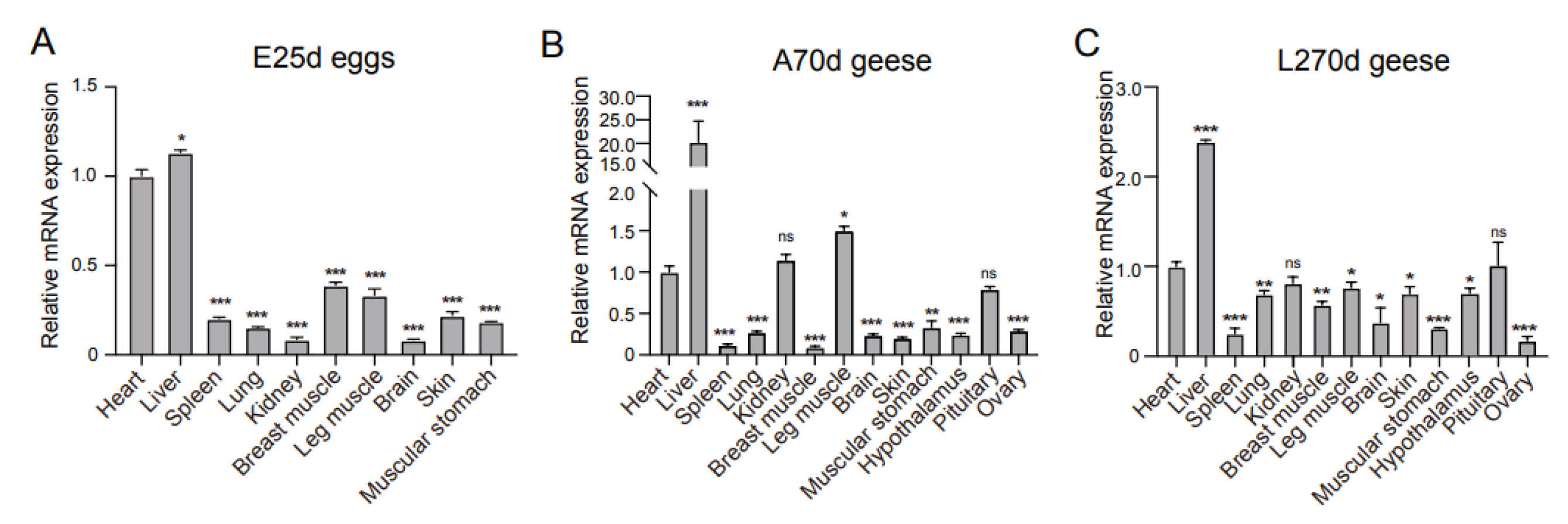 3.3. Tissue Expression Profile of IGF2BP2 mRNA in ZW Geese