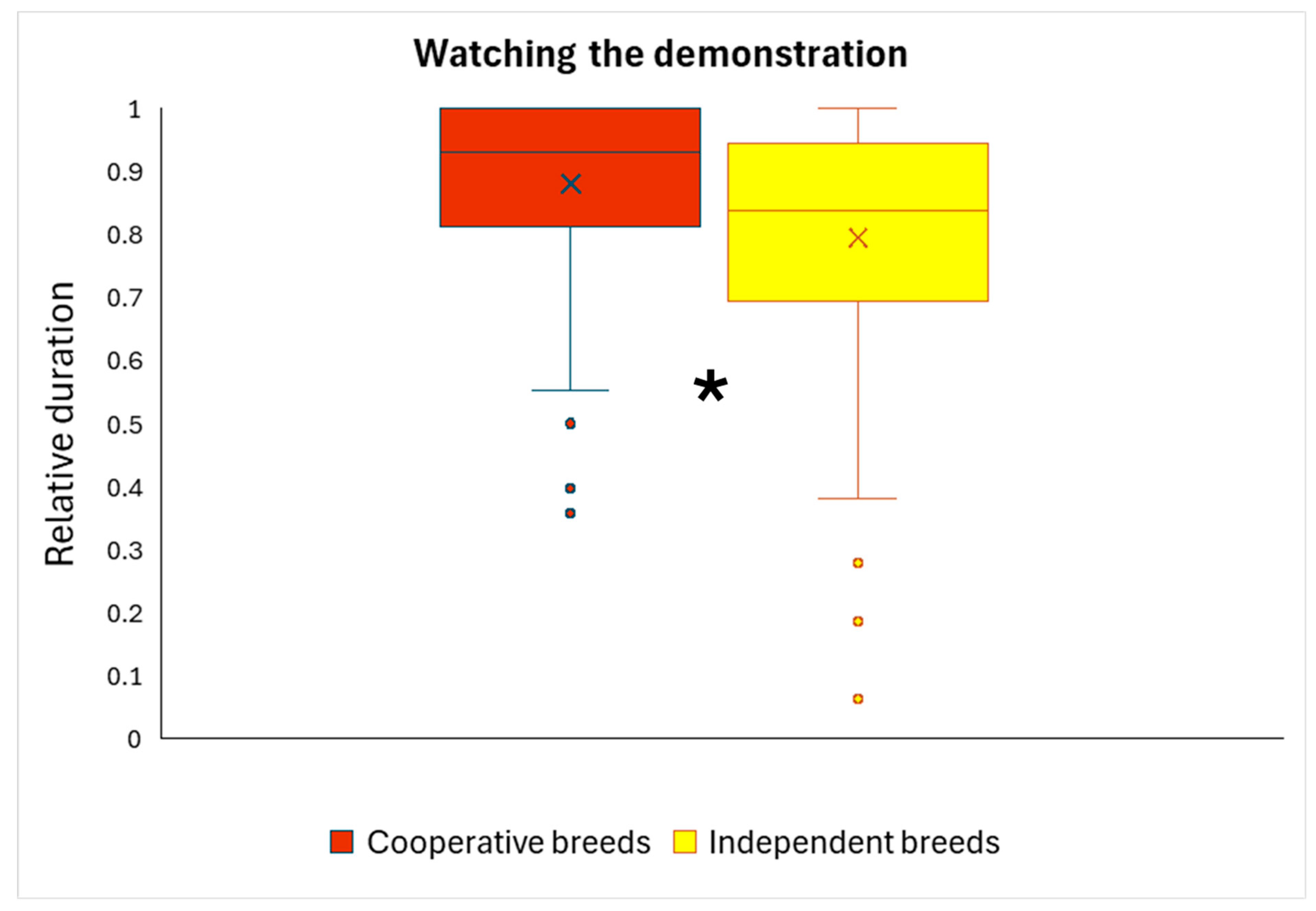 9]. Additionally, we predicted that the social learning effect will be the strongest in the cooperative breeds [