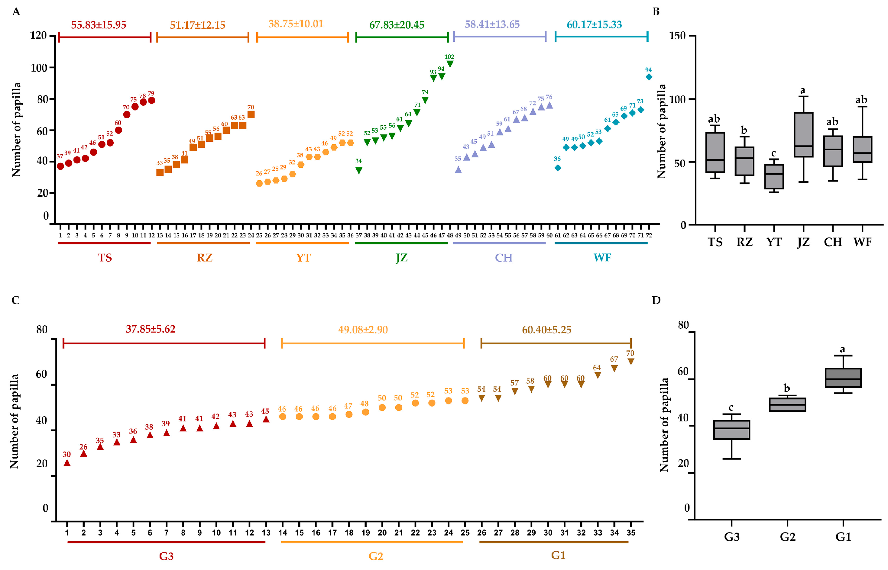 Wang, Y.; Zhang, J.; Hong, Z.; Wang, F.; He, Z.; Yao, M.; Ren, H.; Yu, S.; Wang, Q.; Zhao, C. GWAS and Selective Sweep Analysis Reveal the Genetic Basis of Papilla Number in the Sea Cucumber (Apostichopus japonicus). Animals 2026, 16, 66. https://doi.org/10.3390/ani16010066