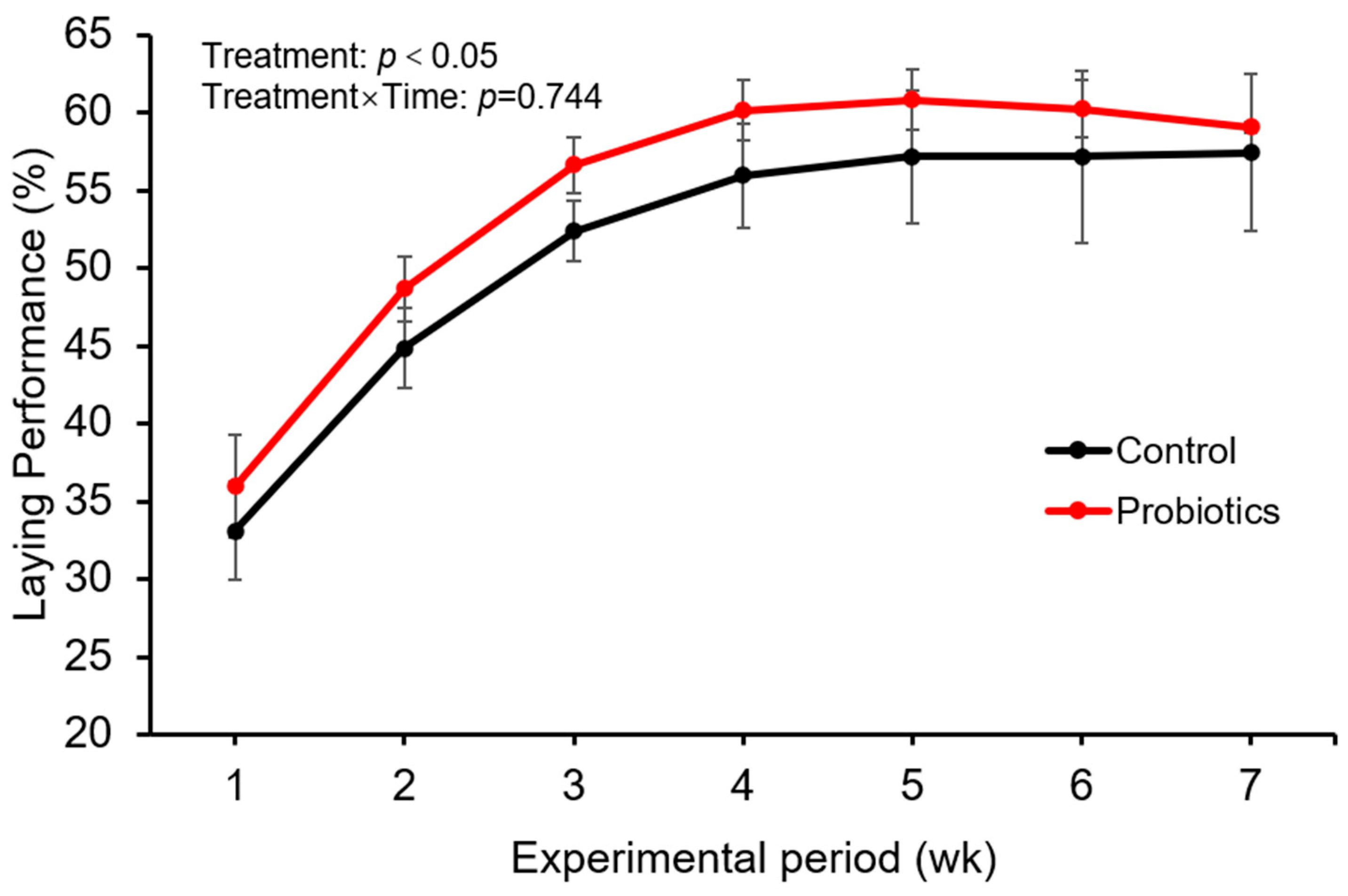 Currently, substantial research has been conducted on the effects of probiotics on animal production performance. The compound probiotic preparation utilized in this study consisted of