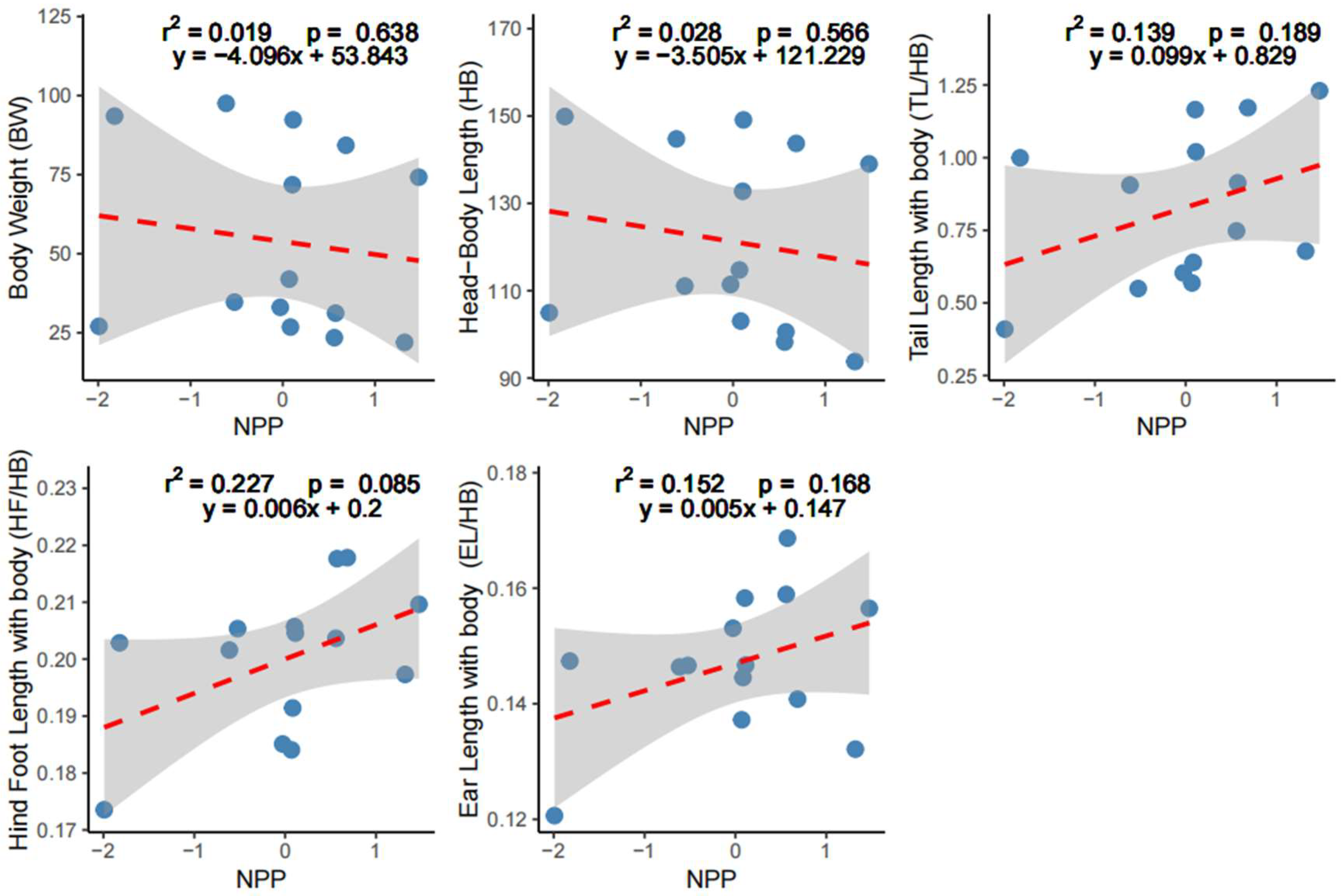 APA StyleLi, Y., Chen, G., Xie, M., Fang, Y., Qin, F., & Song, W. (2026). Community-Level Phenotypic Adaptations of Small Mammals Under Rain-Shadow Dynamics in Baima Snow Mountain, Yunnan. Animals, 16(1), 91. https://doi.org/10.3390/ani16010091