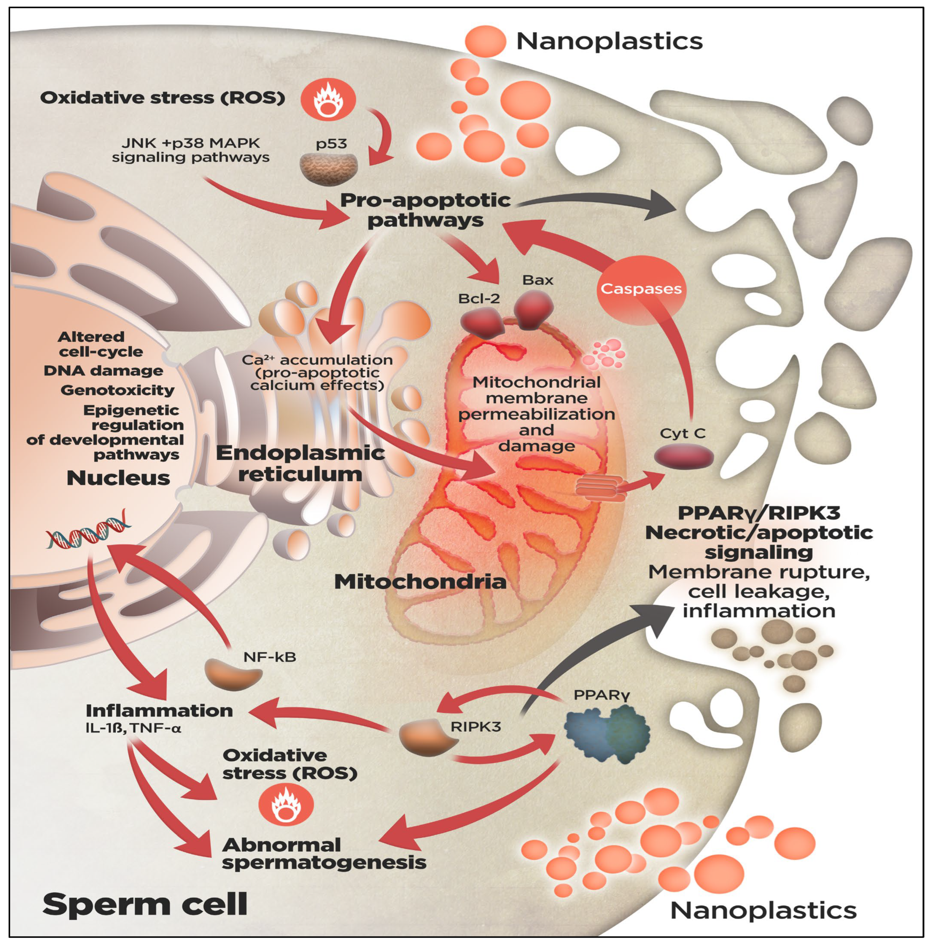 - Liu, Y.; Hao, F.; Liang, H.; Liu, W.; Guo, Y. Exposure to polystyrene nanoplastics impairs sperm metabolism and pre-implantation embryo development in mice. Front. Cell Dev. Biol. 2025, 13, 1562331. [Google Scholar] [CrossRef]