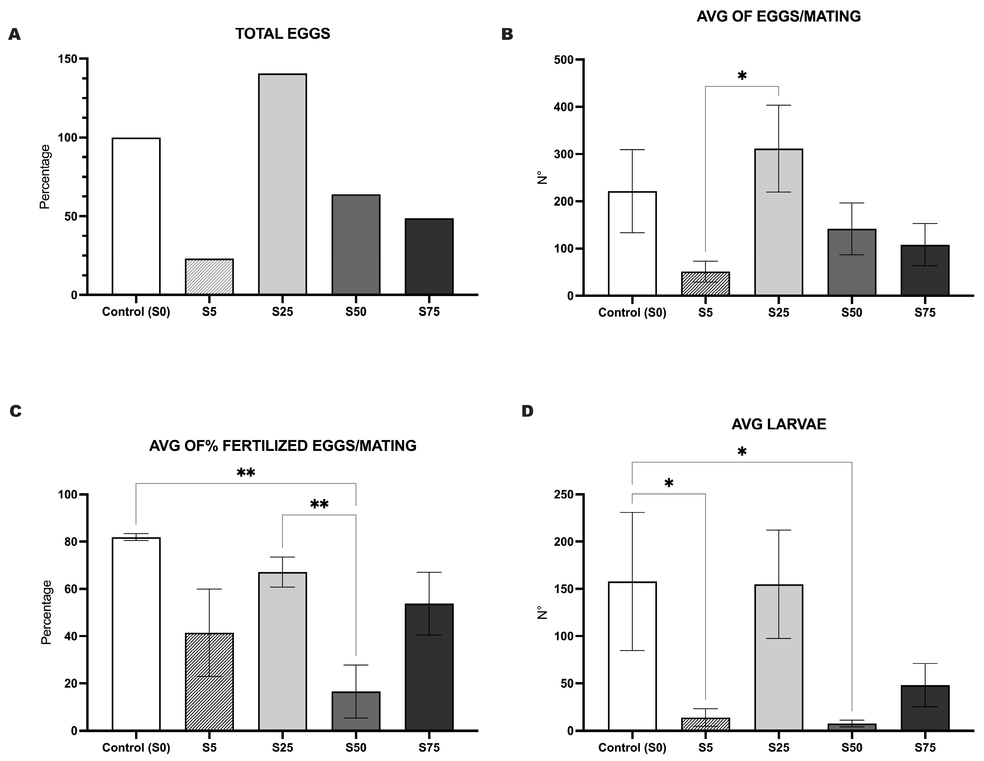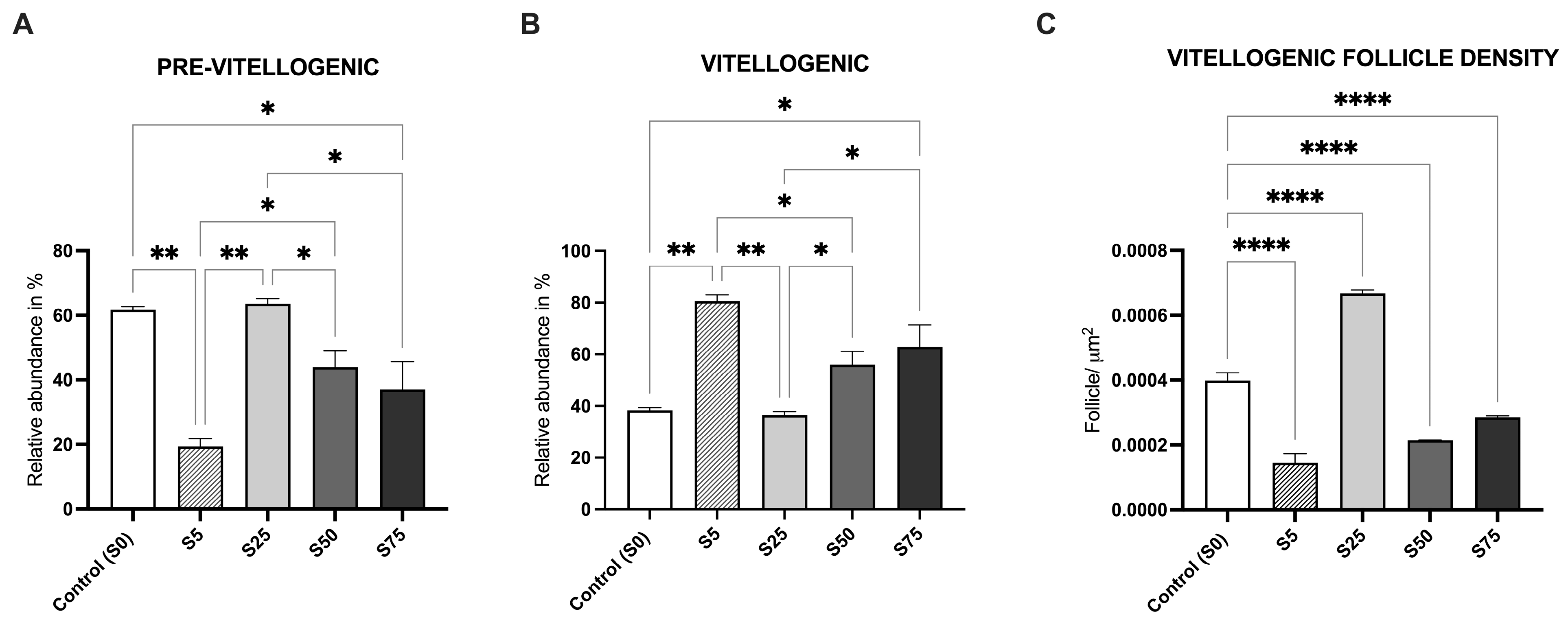 - Percentage of total spawned eggs: Relative egg production compared to S0 group over the entire experimental period;