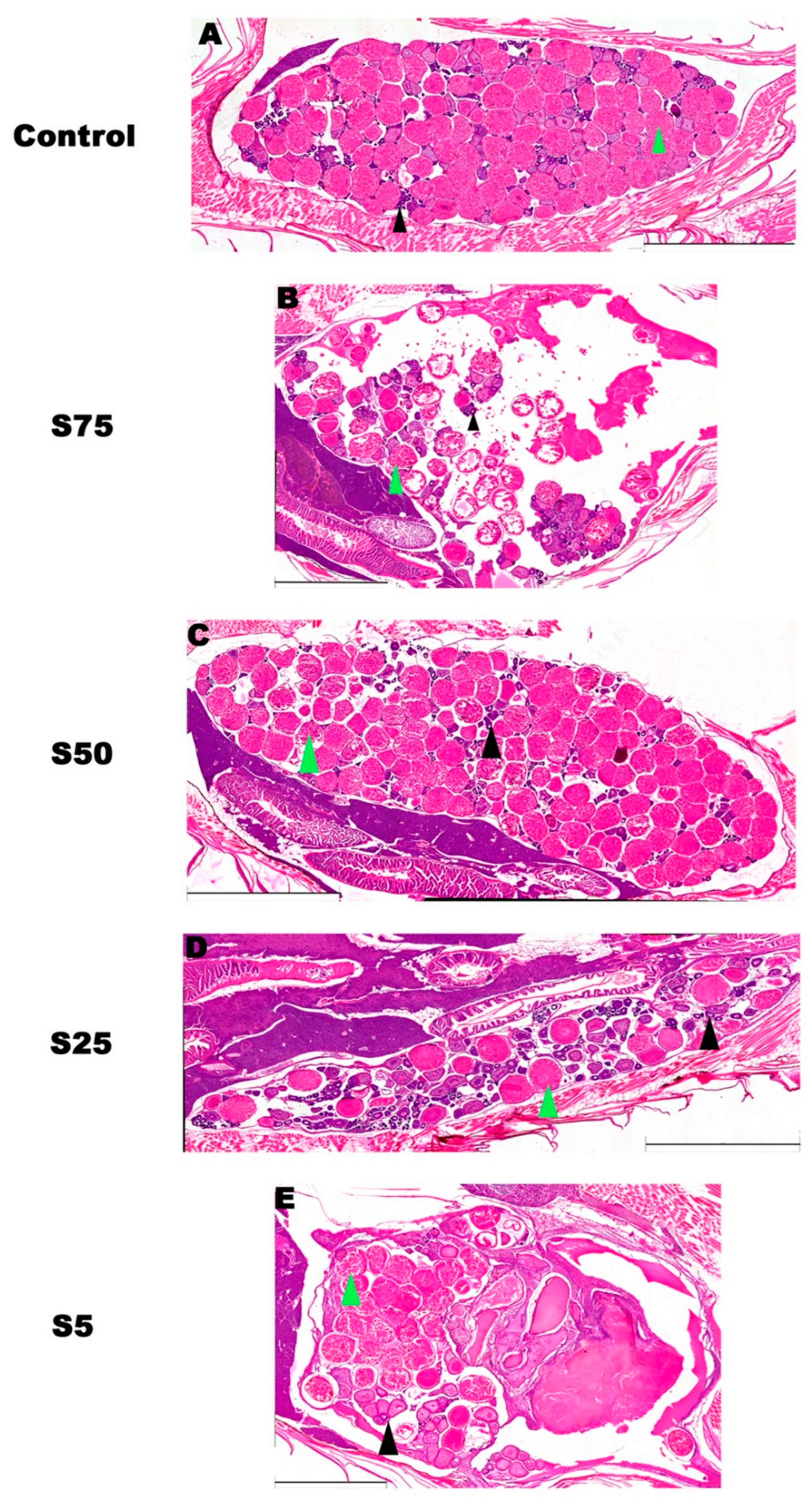 - Petrovici, A.; Popovici, I.; Solcan, C. Histological Structure of the Testis in Adult Zebrafish (Danio rerio). 2017. Available online: https://repository.iuls.ro/xmlui/handle/20.500.12811/1243 (accessed on 20 December 2025).