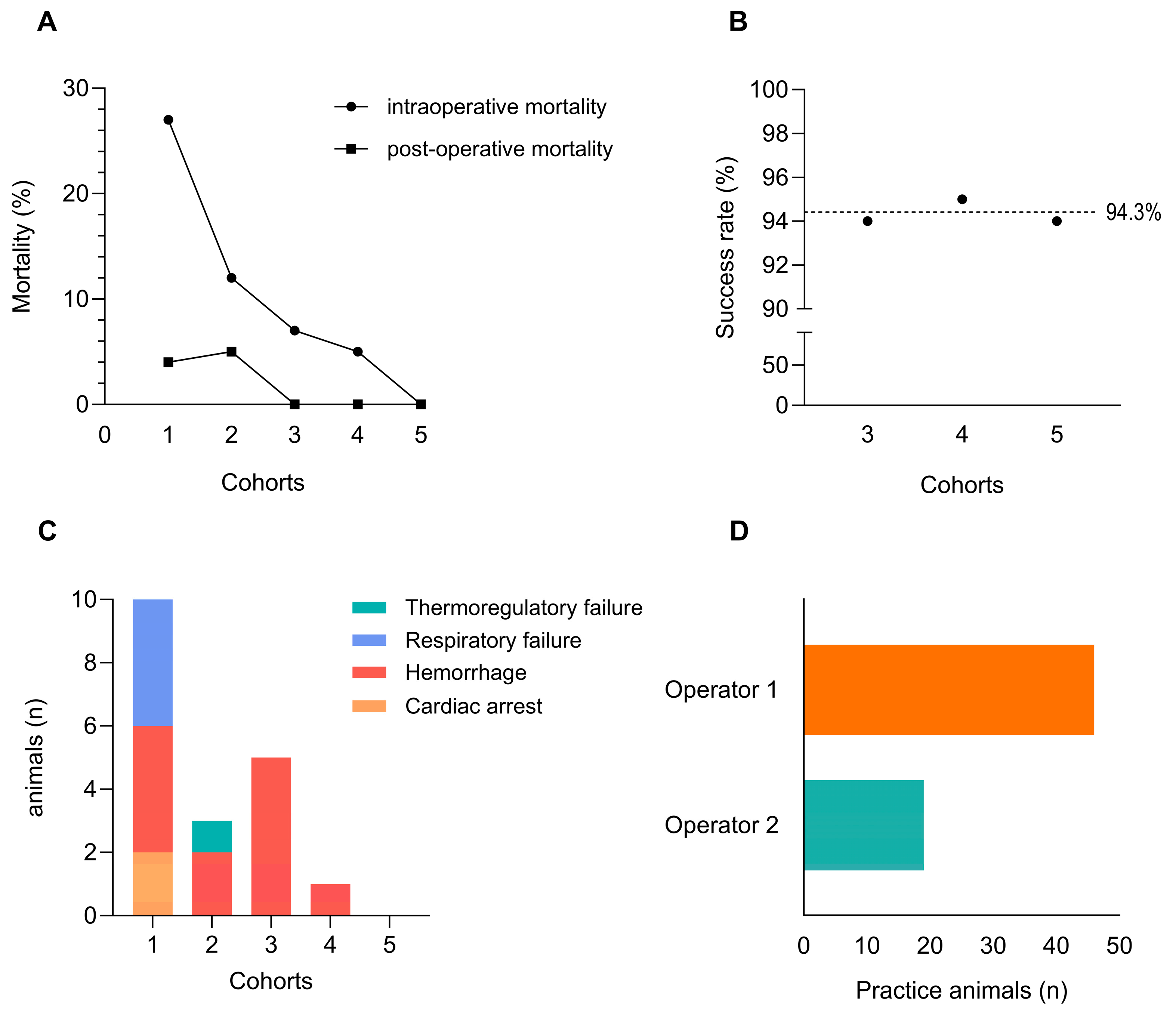 15]. Reducing surgical mortality therefore directly contributes to animal reduction by decreasing the number of animals required to obtain valid experimental datasets. Despite the abundance of published PL protocols, many provide limited insight into the critical procedural steps that most strongly influence surgical outcome and perioperative survival and experimental success [