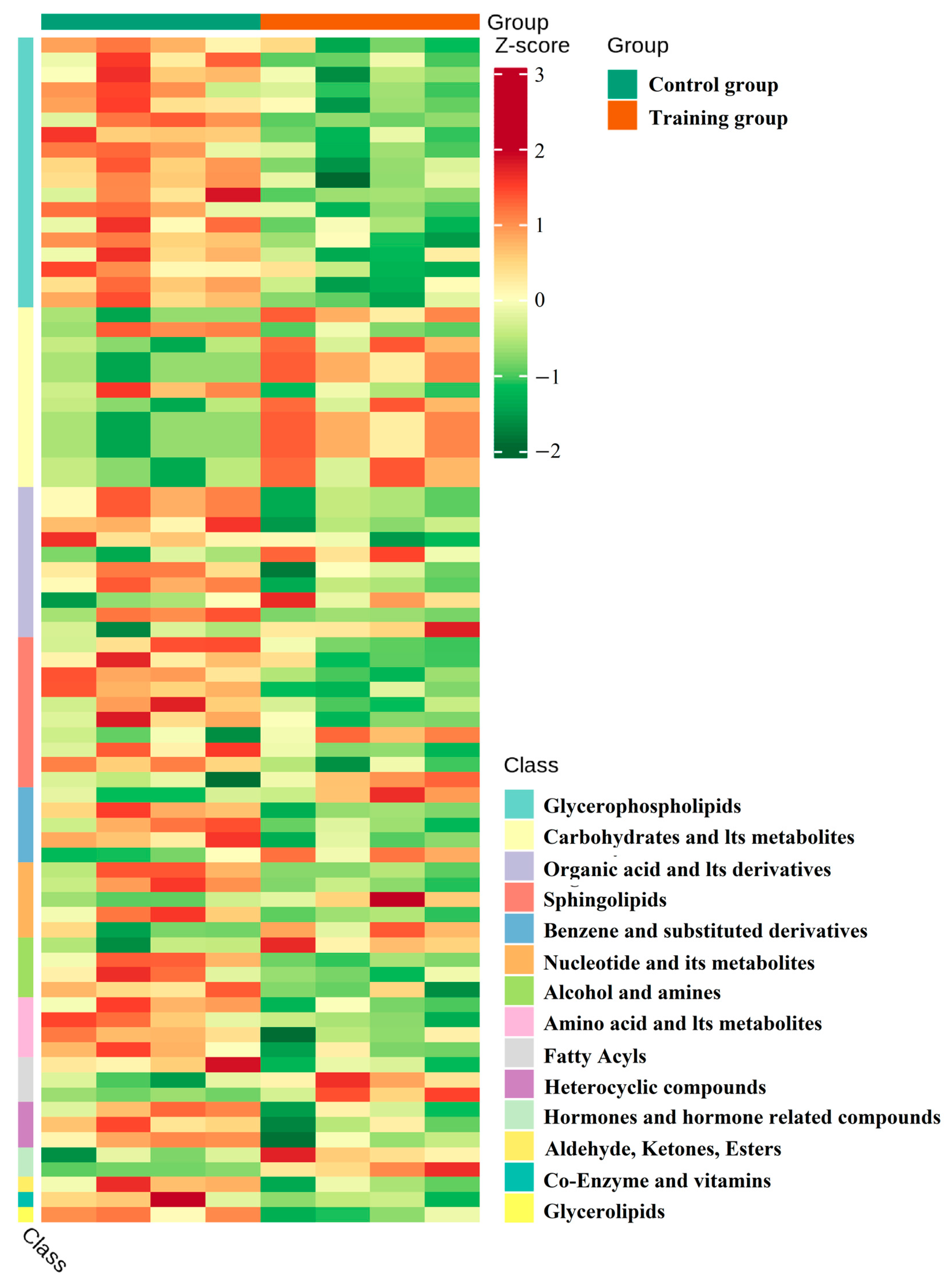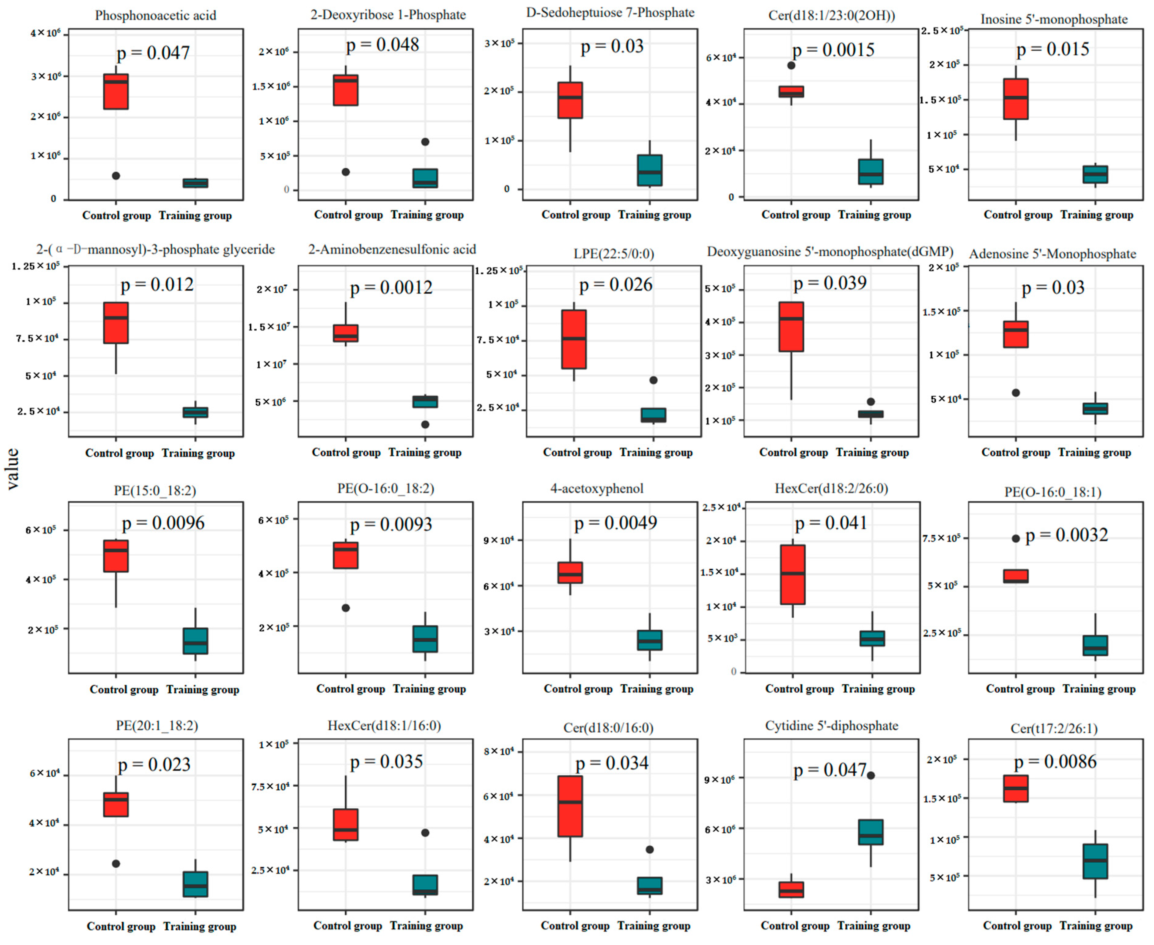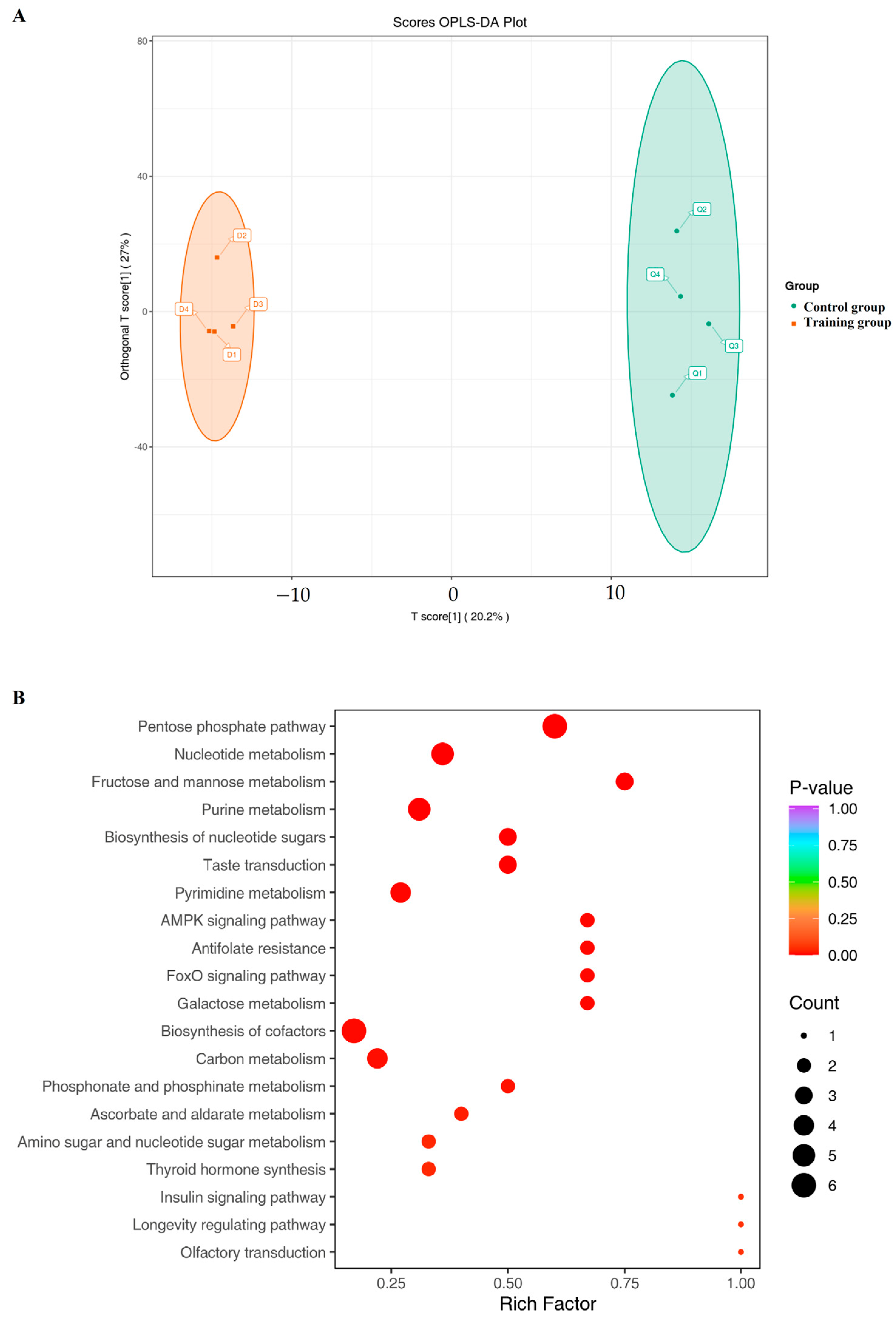 3.3. Training Significantly Altered Metabolome of Plasma Exosomes in the Yili Horse