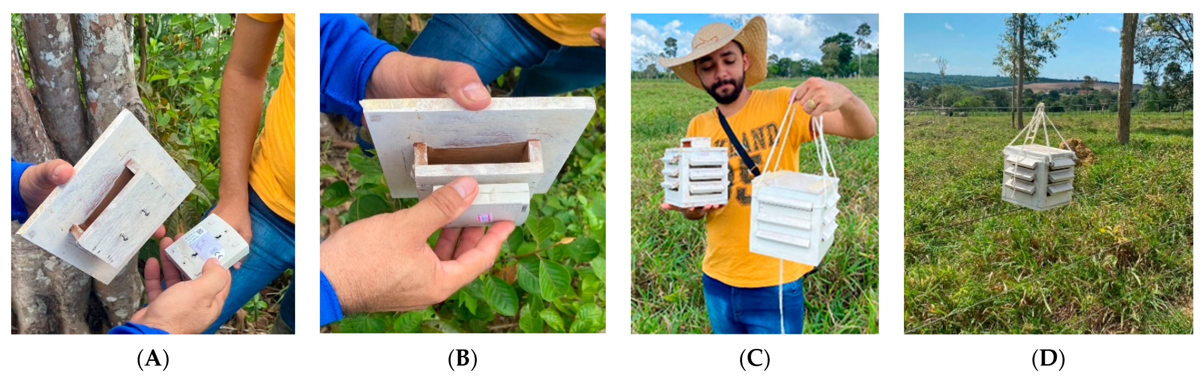 - da Silva, W.C.; Printes, O.V.N.; Lima, D.O.; da Silva, É.B.R.; Santos, M.R.P.D.; Júnior, R.N.C.C.; Barbosa, A.V.C.; da Silva, J.A.R.; Silva, A.G.M.E.; Silva, L.K.X.; et al. Evaluation of the temperature and humidity index to support the implementation of a rearing system for ruminants in the Western Amazon. Front. Vet. Sci. 2023, 10, 1198678. [Google Scholar] [CrossRef]