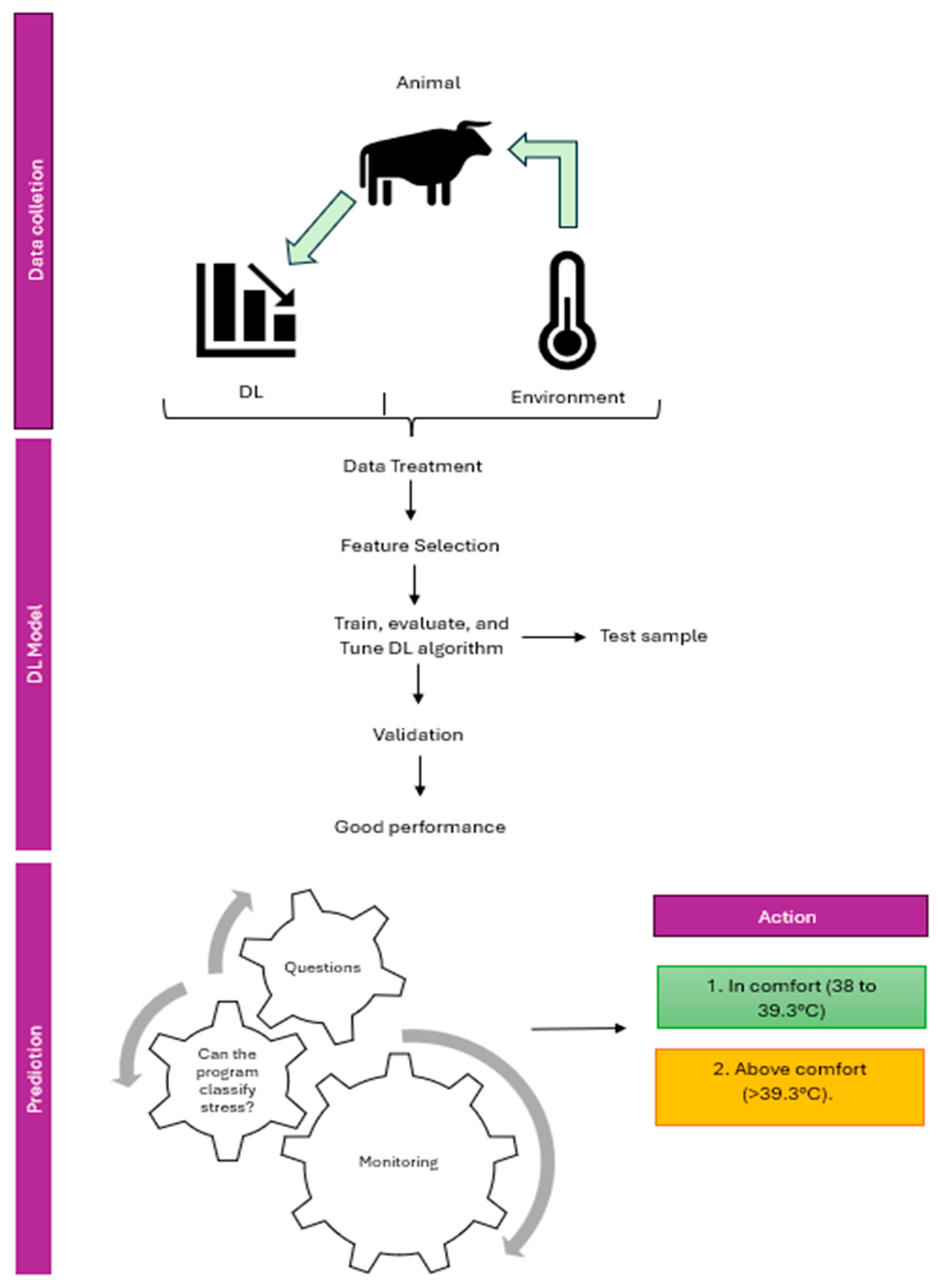 - Neves, S.F.; Silva, M.C.; Miranda, J.M.; Stilwell, G.; Cortez, P.P. Predictive Models of Dairy Cow Thermal State: A Review from a Technological Perspective. Vet. Sci. 2022, 9, 416. [Google Scholar] [CrossRef]