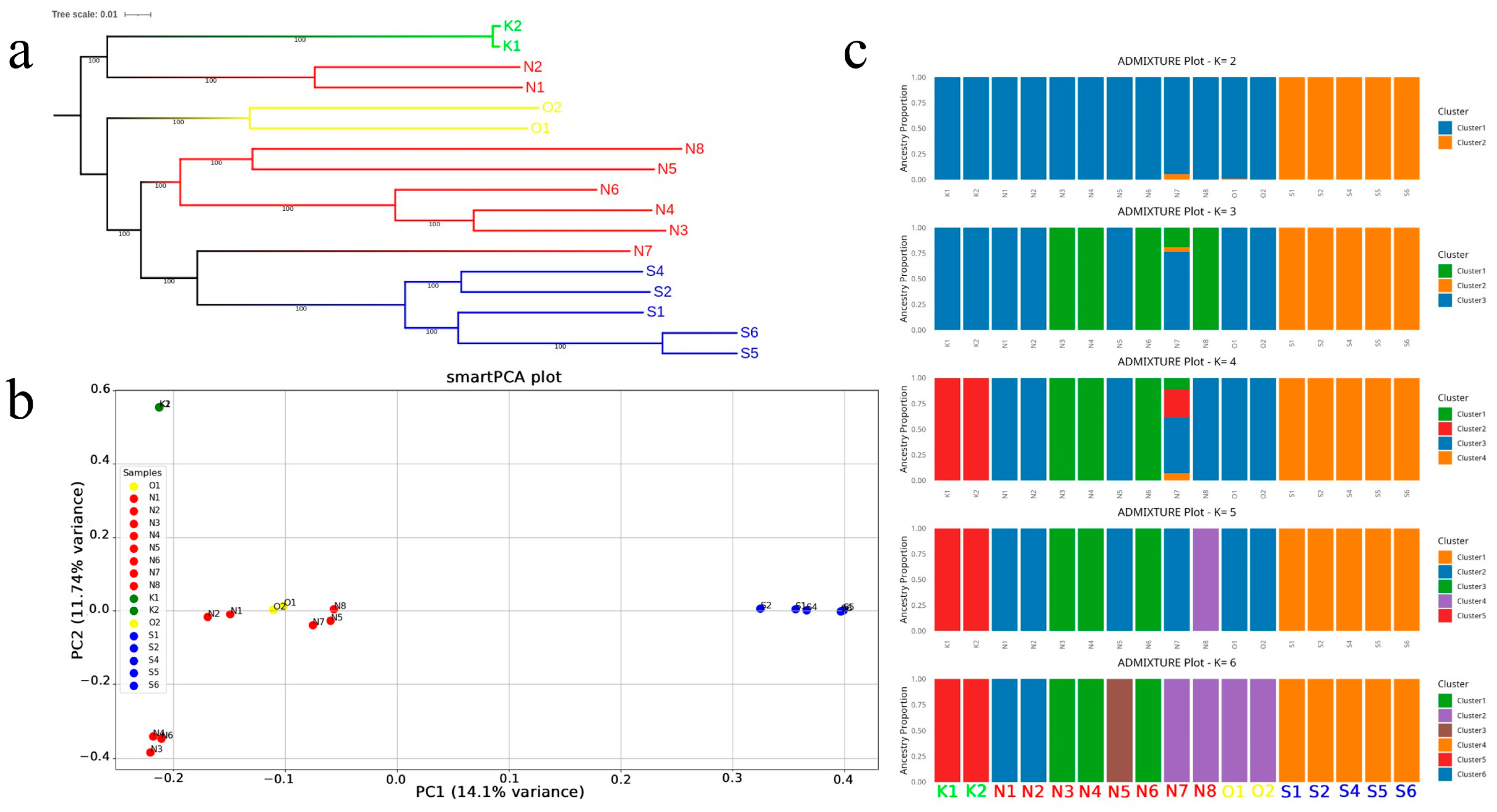 - Patterson, N.; Price, A.L.; Reich, D. Population structure and eigenanalysis. PLoS Genet. 2006, 2, e190. [Google Scholar] [CrossRef] [PubMed]