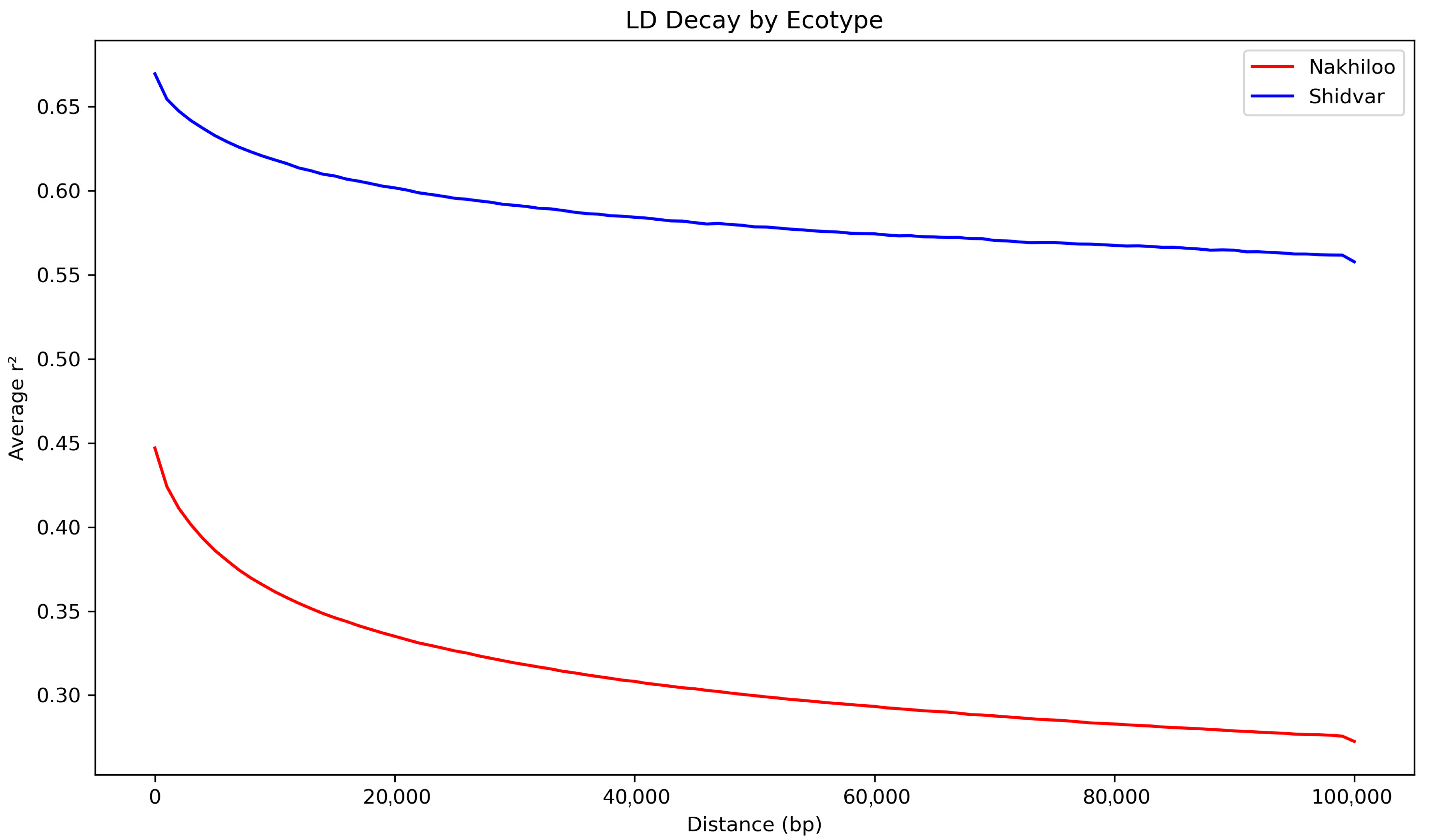 - Speciation Genomics. LD Decay Analysis. Speciation Genomics How-To Guide 2023. Available online: https://speciationgenomics.github.io/ld_decay (accessed on 19 November 2025).