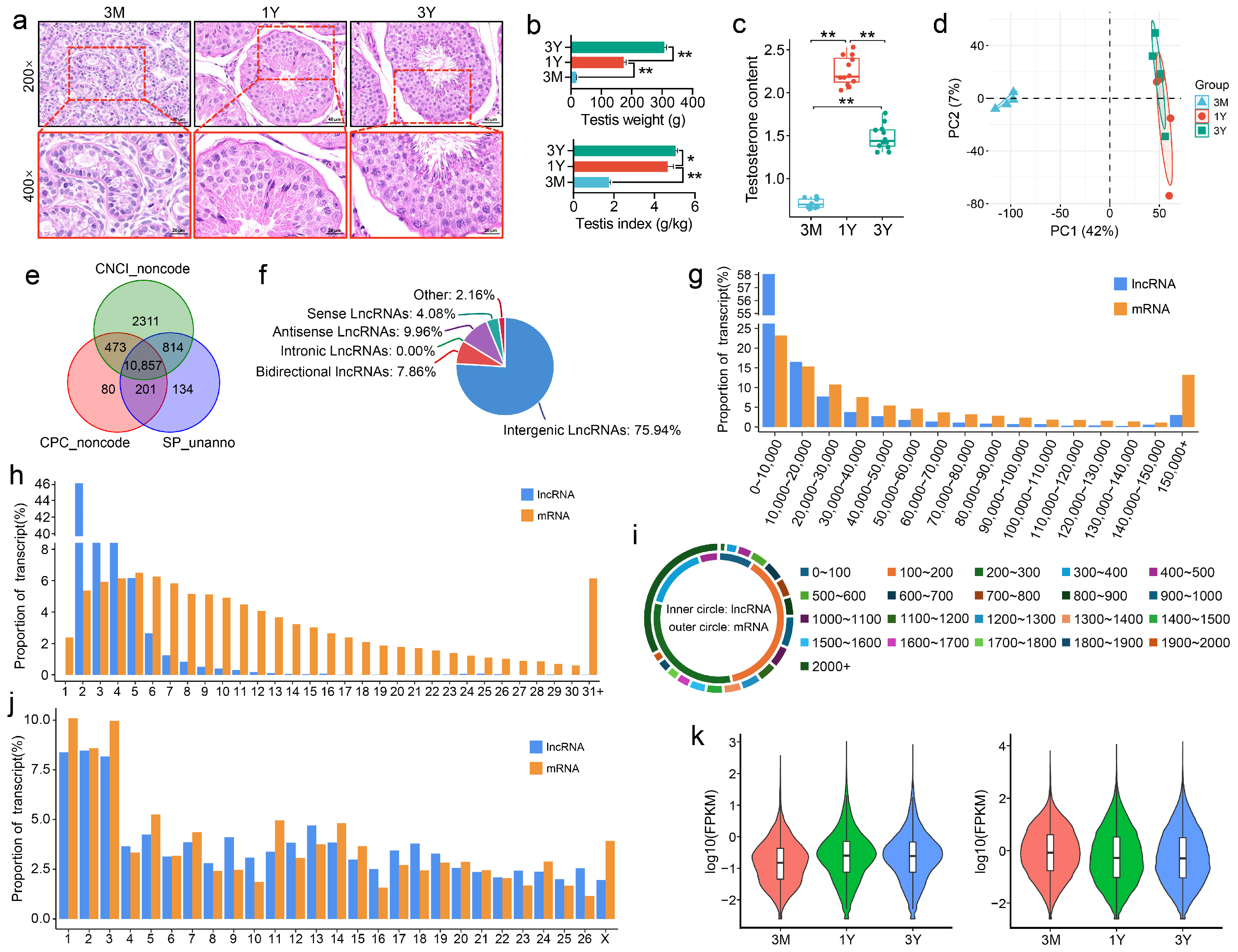 3.1. Age-Dependent Morphological Changes, Hormone Levels, and LncRNA Characterization in Tibetan Sheep Testes
