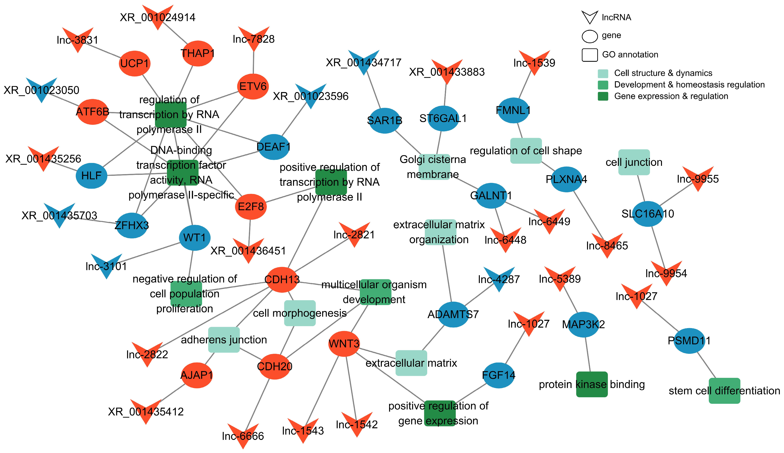 3.3. Prediction of Cis-Acting LncRNA Target Genes and Functional Enrichment