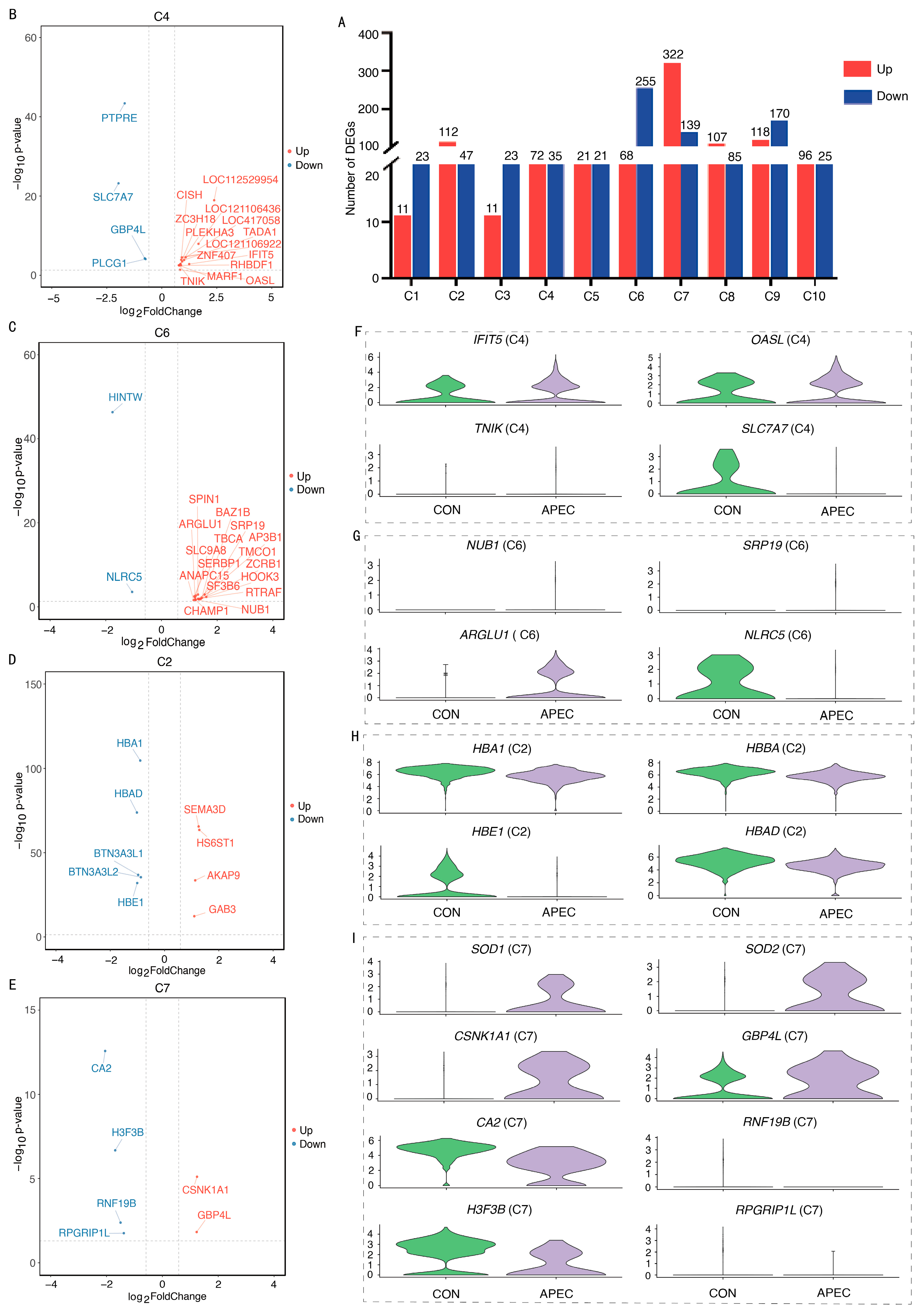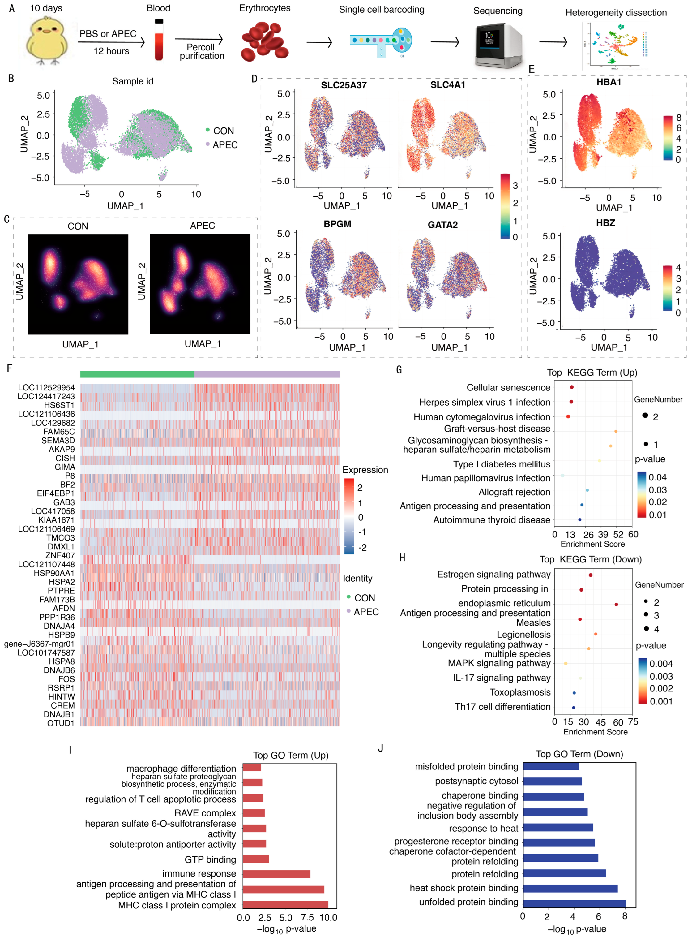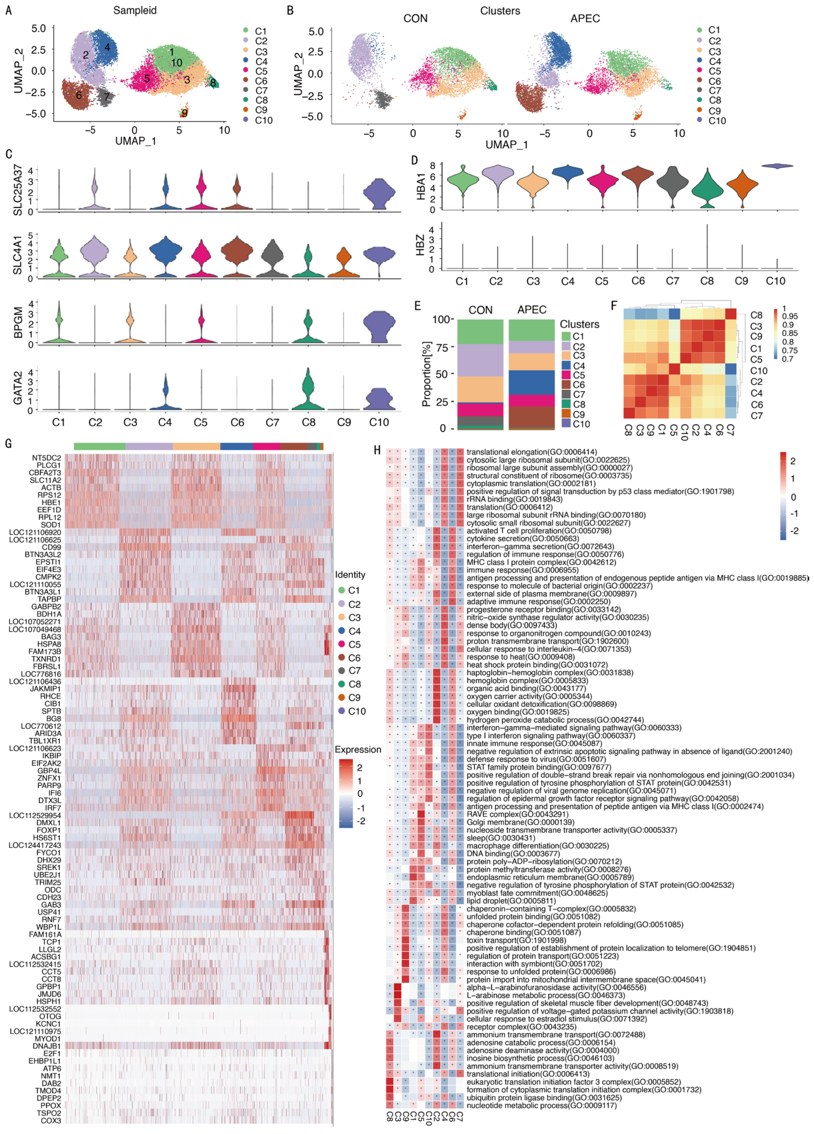 3.5. Transcriptome Analysis of Erythroid Cell Subpopulations Following APEC-Infection
