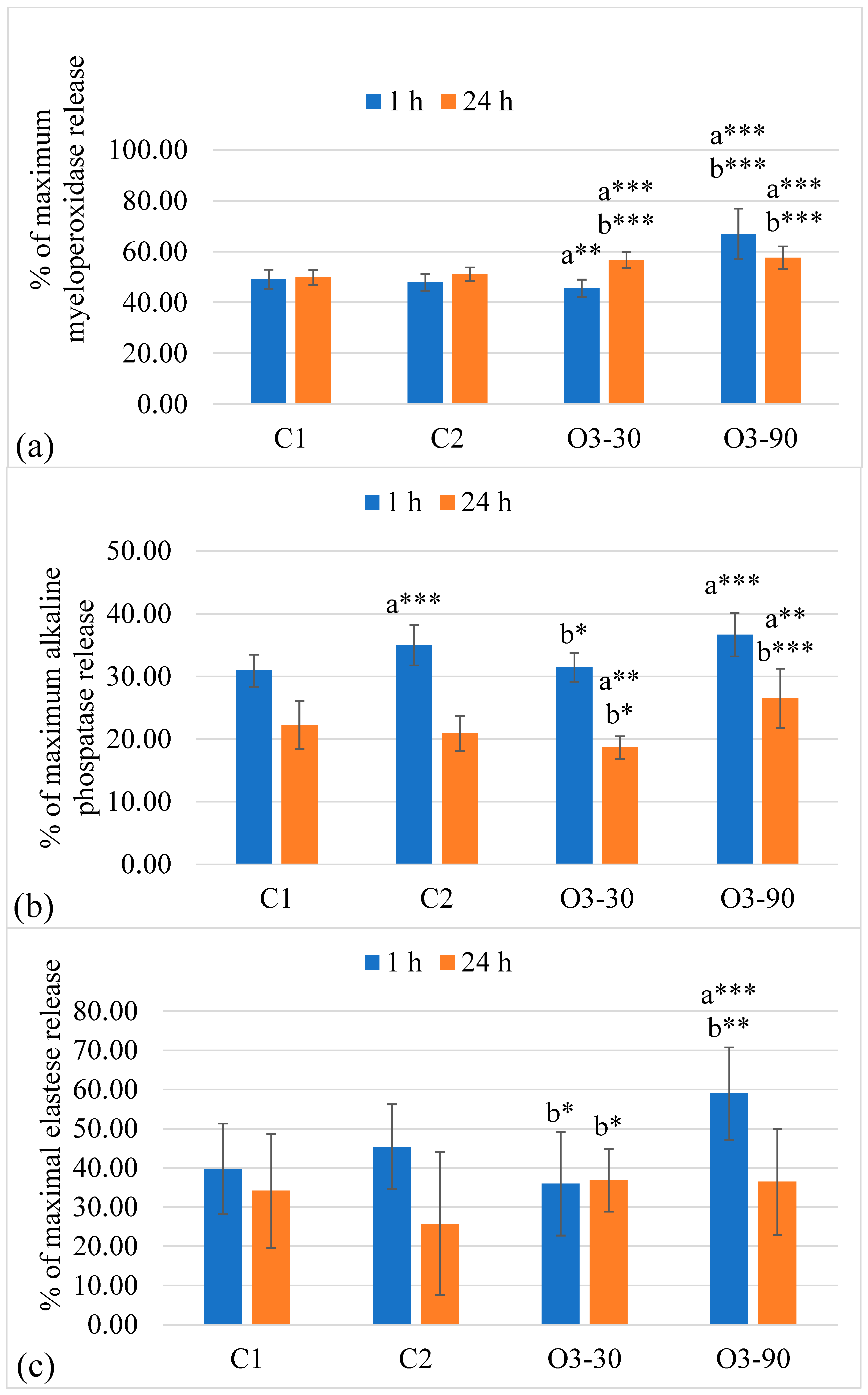 | Parameter | MPO 1 h | MPO 24 h | ALP 1 h | ALP 24 h | Elastase 1 h | Elastase 24 h |