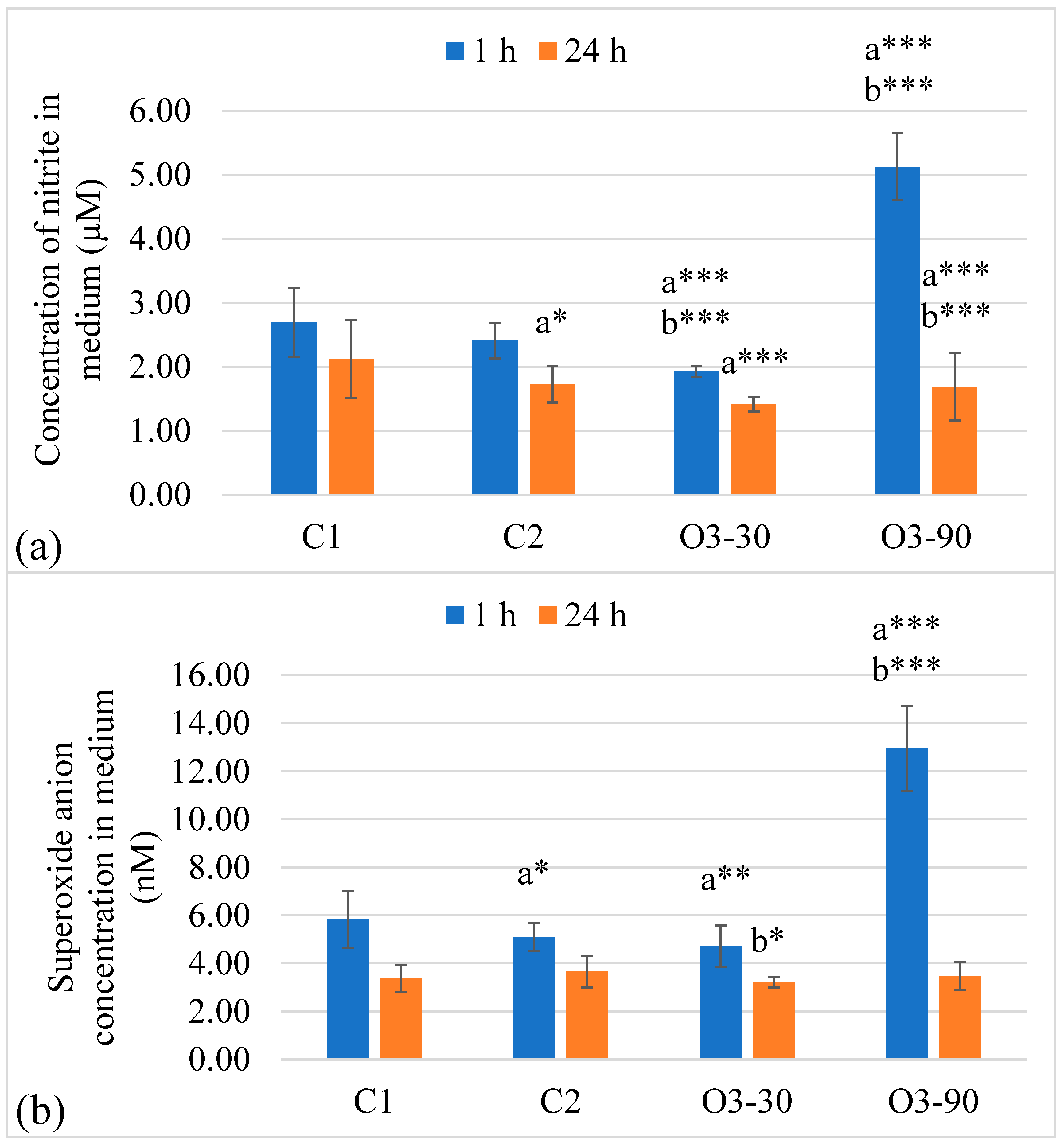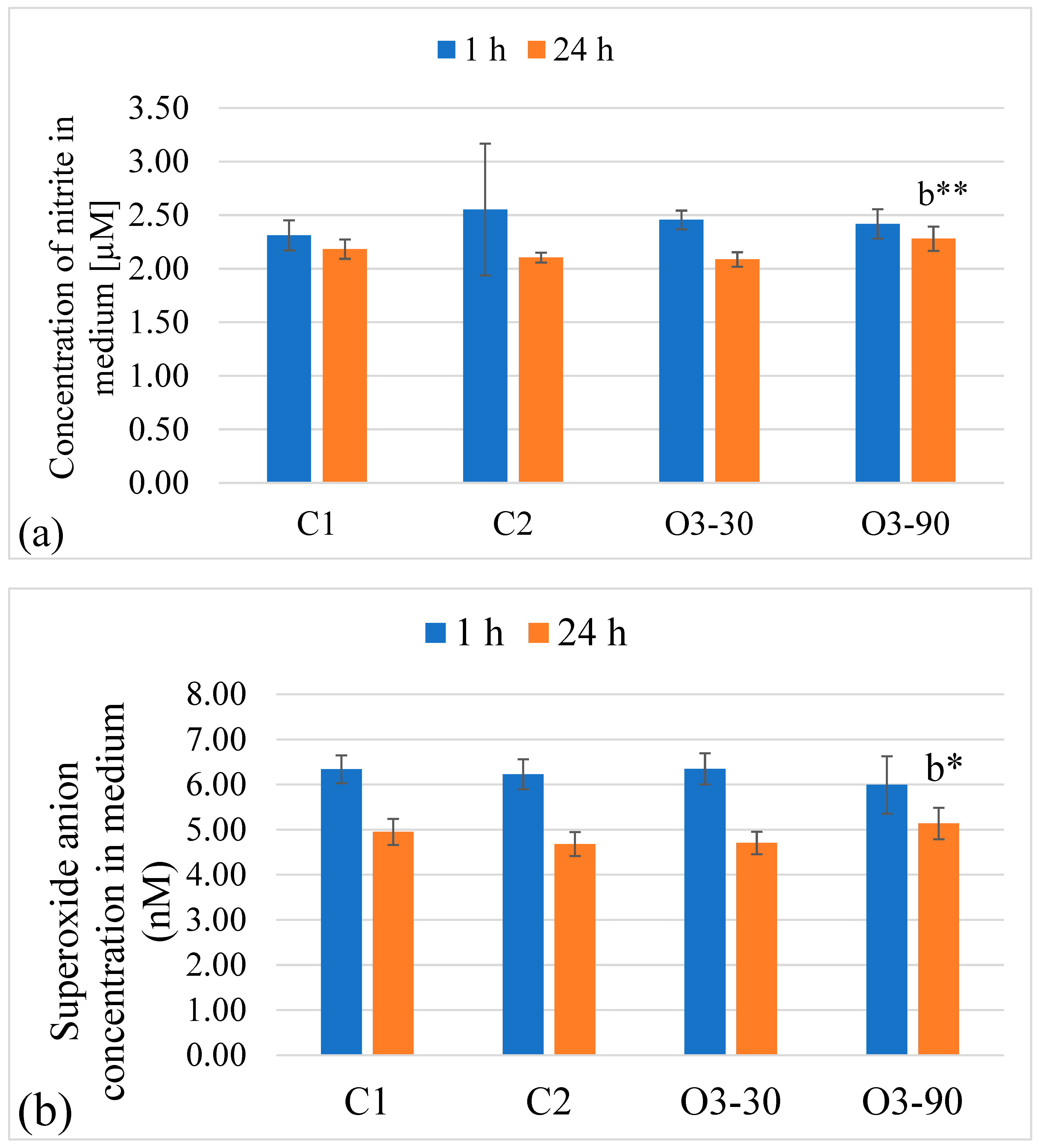 | Parameter | Nitrite 1 h | Nitrite 24 h | Superoxide 1 h | Superoxide 24 h |