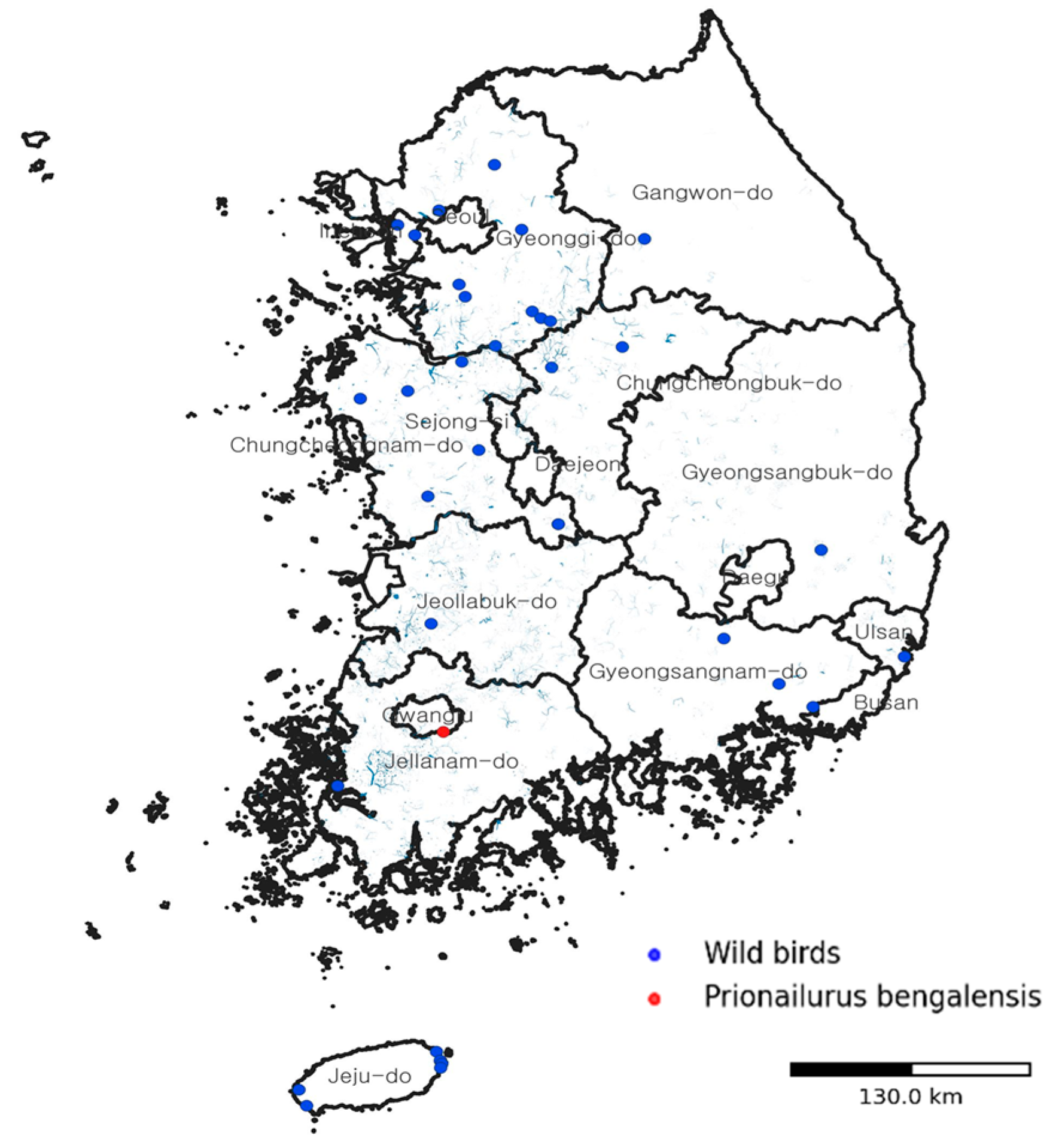 Prionailurus bengalensis), representing the first documented HPAI case in a wild mammal in South Korea [