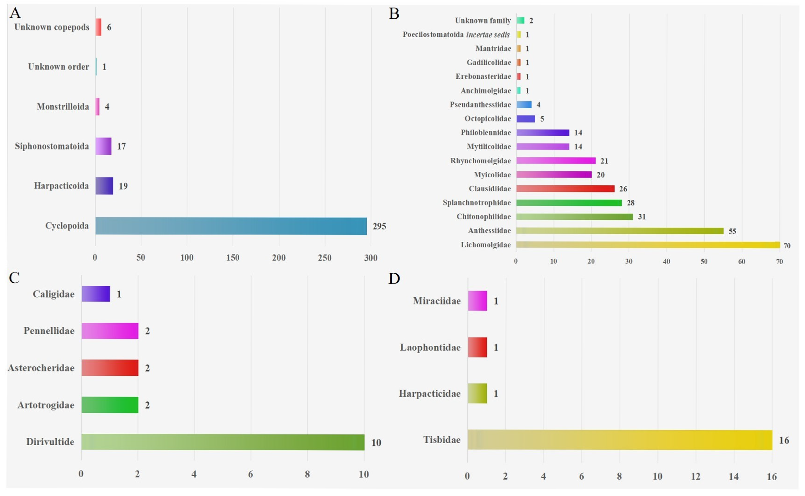 Sun J, Ju H, Du X, Xu C, Chang MS, Liu Z, Li X. An Annotated Checklist of Symbiotic Copepods of Mollusks in the Global Oceans: A Review of Diversity, Hosts and Geographical Distributions. Animals. 2026; 16(2):212. https://doi.org/10.3390/ani16020212