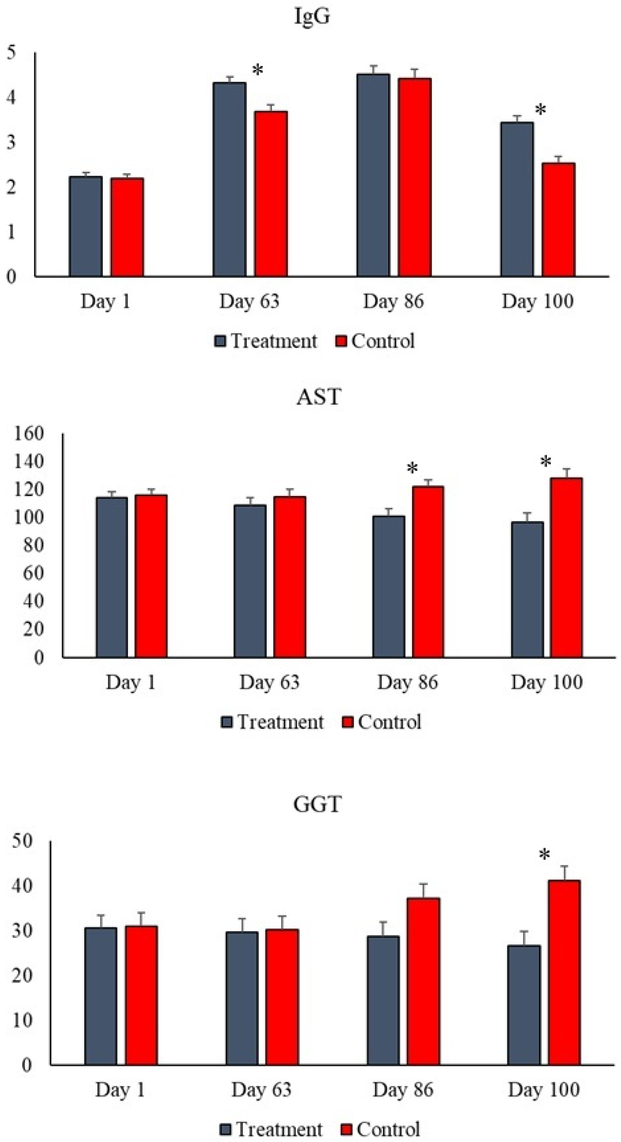 | IgG (g/dL) | 3.88 | 4.08 | 0.18 | 0.38 | 0.04 | 0.05 |