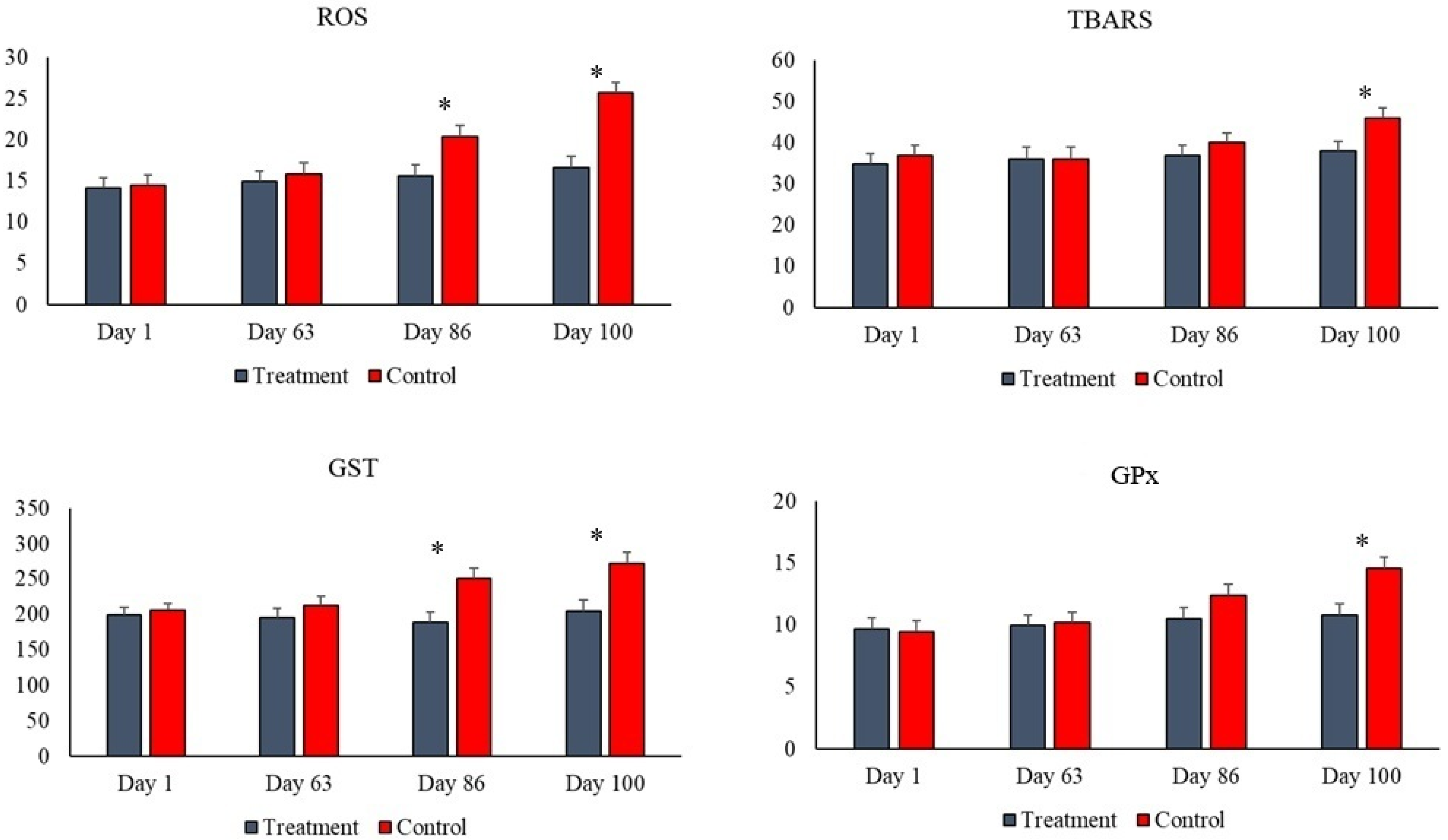 | TBARS (nmol/mL) | 42.60 | 37.10 | 2.45 | 0.34 | 0.05 | 0.02 |