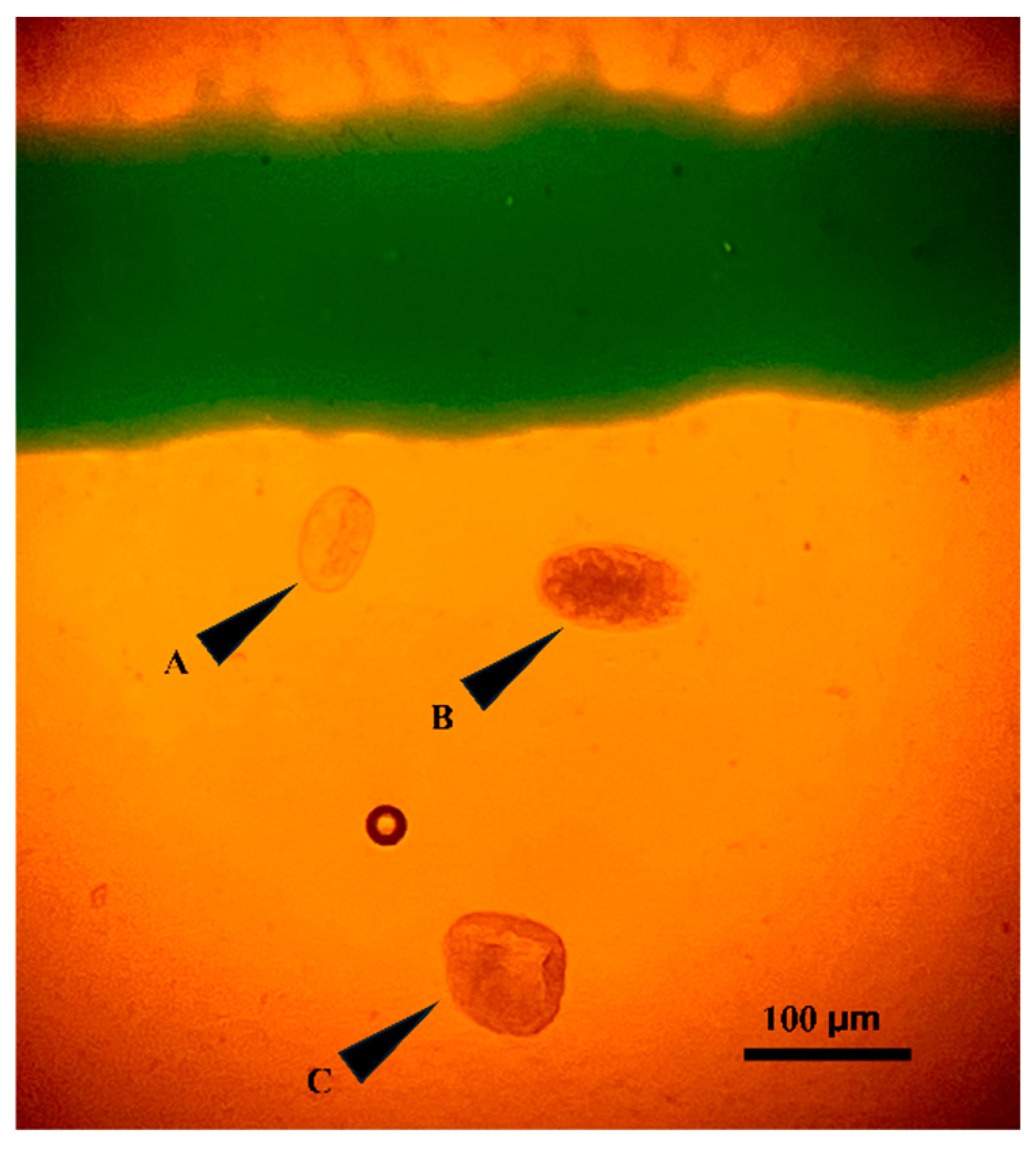 ®; MEP Equine Solutions, Lexington, KY, USA). This approach is consistent with earlier methods that used fluorescent chitin-binding probes to label helminth eggs, combined with automated image analysis for detection and enumeration [